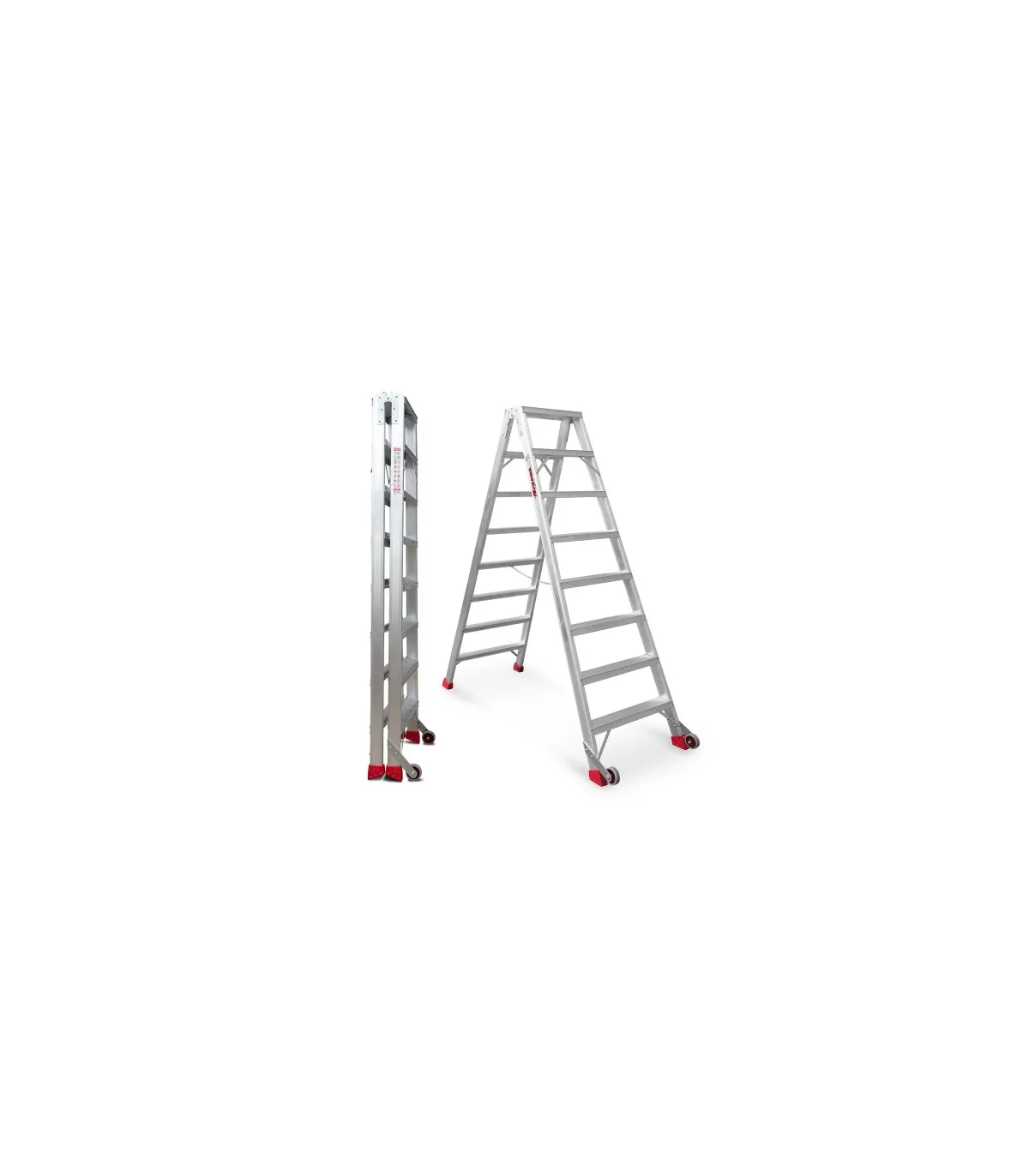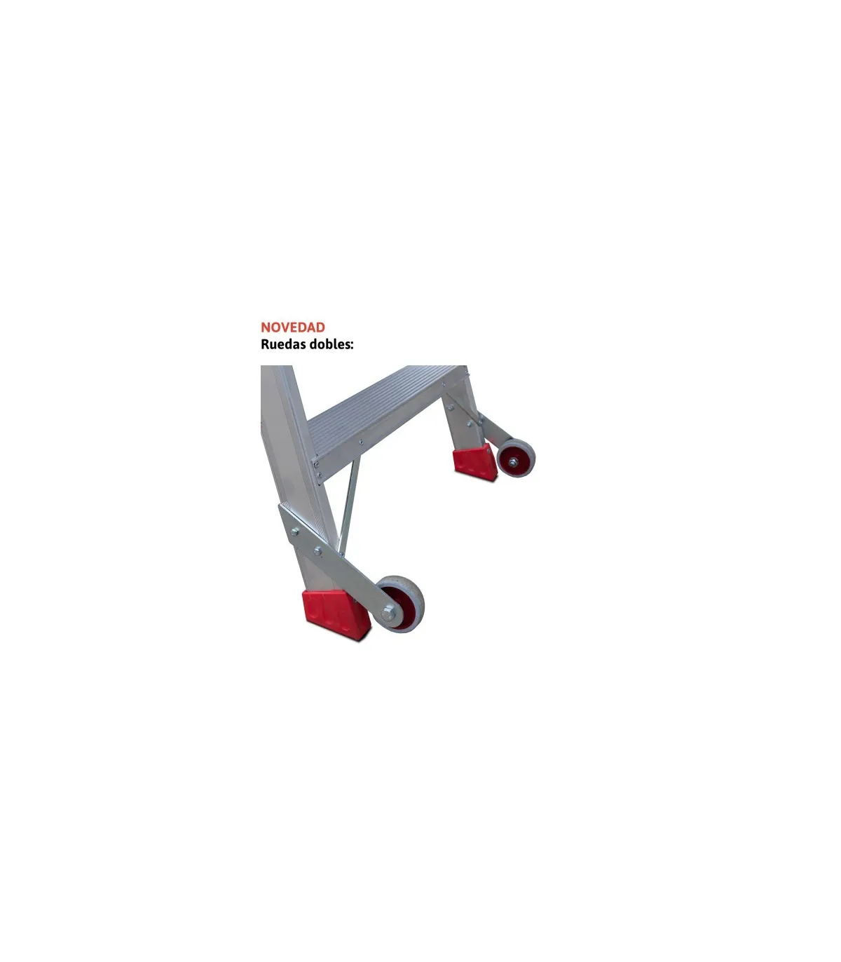 El modelo NDS está fabricado en aluminio, posee un sistema de bisagras rígido y resistente entre los dos tramos de subida, un sistema anti cierre seguro, peldaños de 13 cm y amplios tacos de goma con un buen agarre a la superficie.