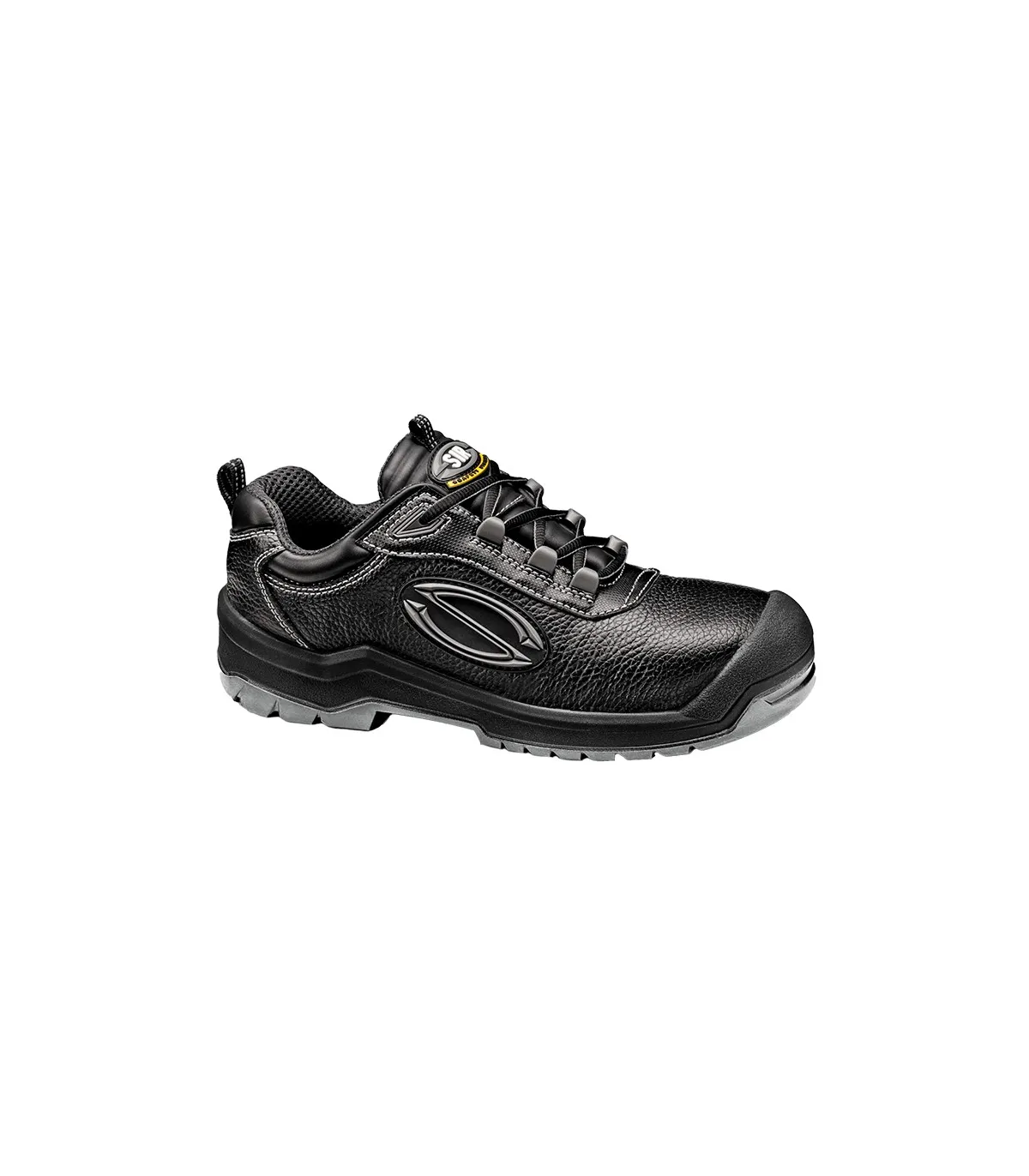 Calzado bajo, libre de metal, con puntera en fibra de vidrio y lámina de composite de espesor homogéneo de 4 mm. Con pala de piel flor imprimida S3, y entresuela con protección adicional de empeine en la zona de la punta. La suela PU/PU, gracias a su esculpido especial, garantiza un efecto altamente drenante cuando hay líquidos. Zona mediana con ranura diseñada para reforzar la adherencia al estar en escaleras de mano. Grado SRC antideslizante.