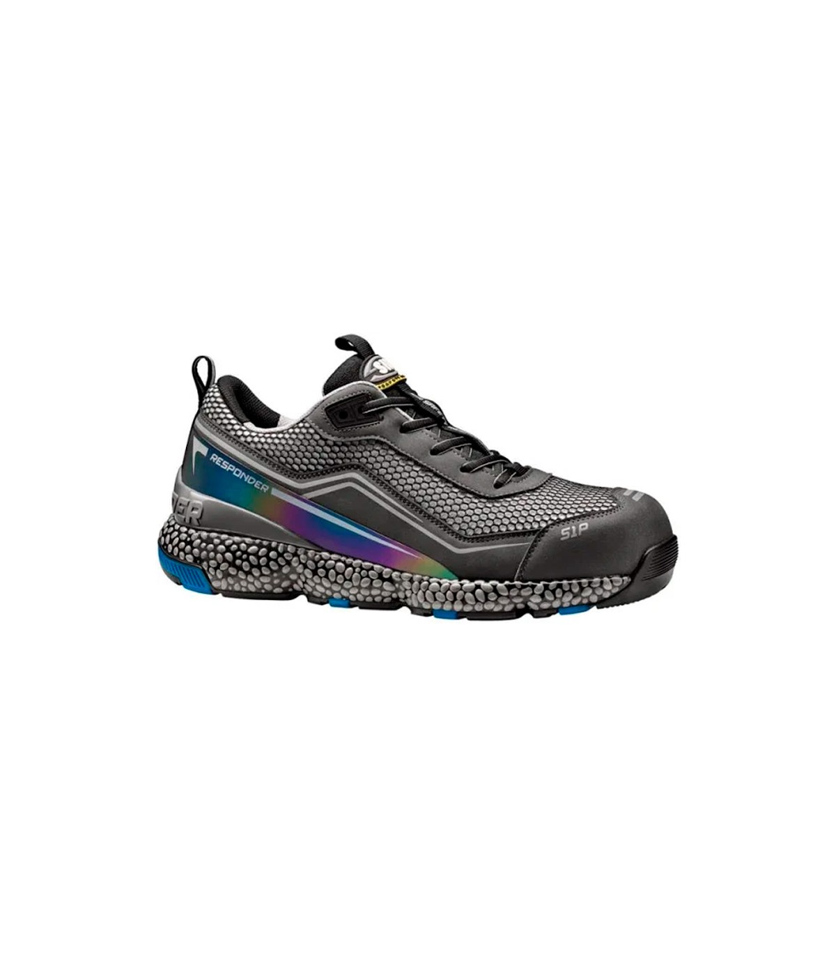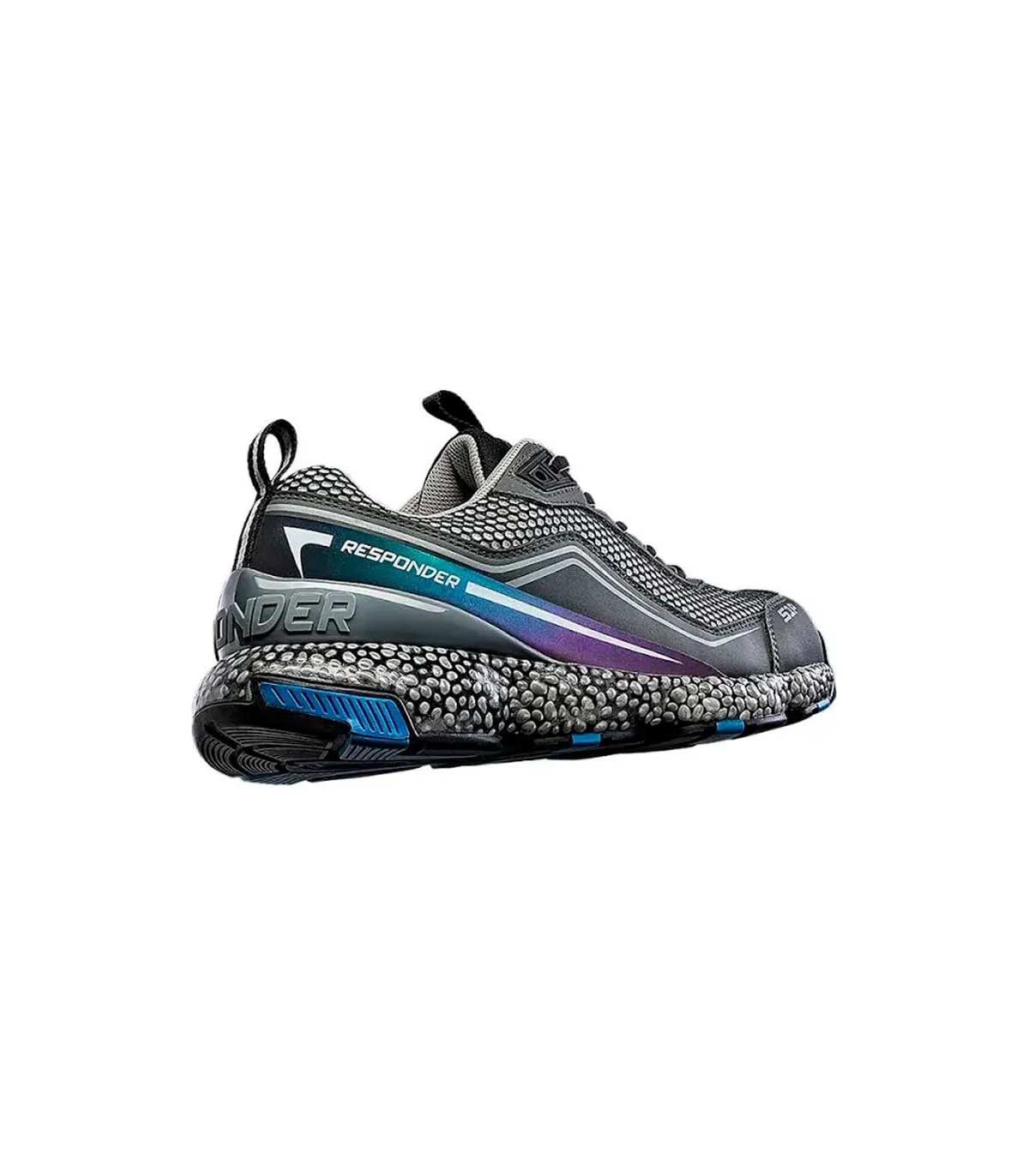 Cuenta conun corte de Air-Mesh/microfibra con cierre de cordones e inserciones de reflex. La suela de E-TPU Responder/Caucho proporciona a los zapatos un excelente efecto de elasticidad y amortiguación: la entresuela de espuma de poliuretano de célula cerrada se extiende por toda la planta del pie garantizando la flexibilidad y la amortiguación reactiva integral. La suela externa de goma, gracias a lasprofundas ranuras longitudinales, acentúa la flexibilidad de la suela y garantiza un agarre superior en cualquier tipo de superficie. Grado SRC antideslizante.