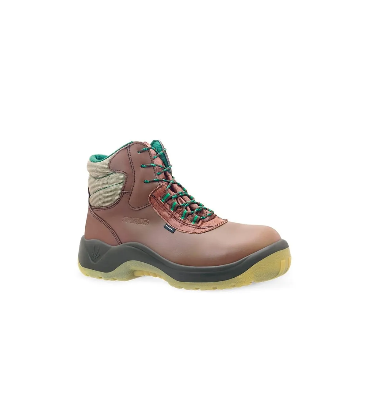 Suela antitorsión, resistente a aceites e hidrocarburos. Cuenta con refuerzo especial en el puente para realizar trabajos sobre escalera.