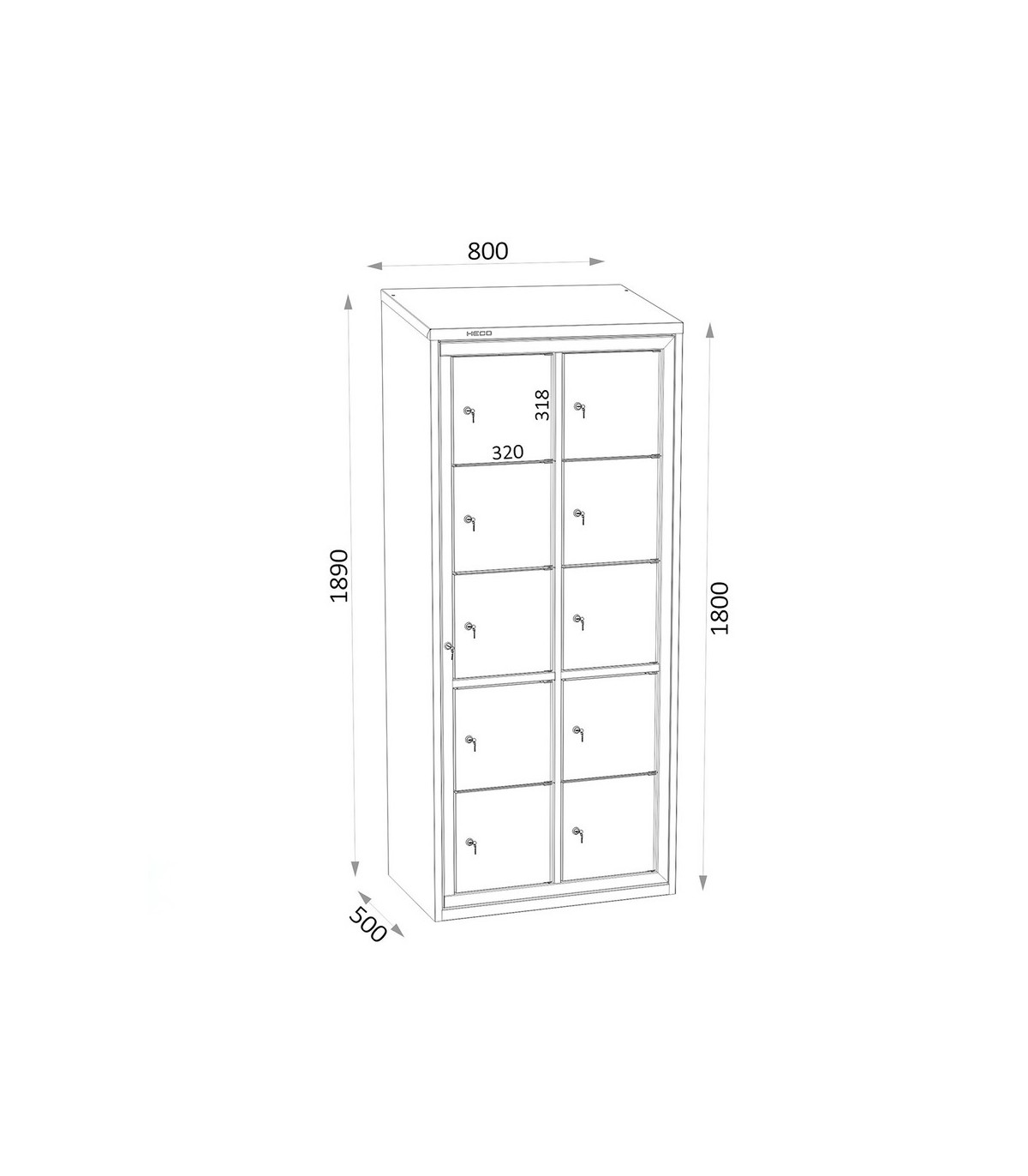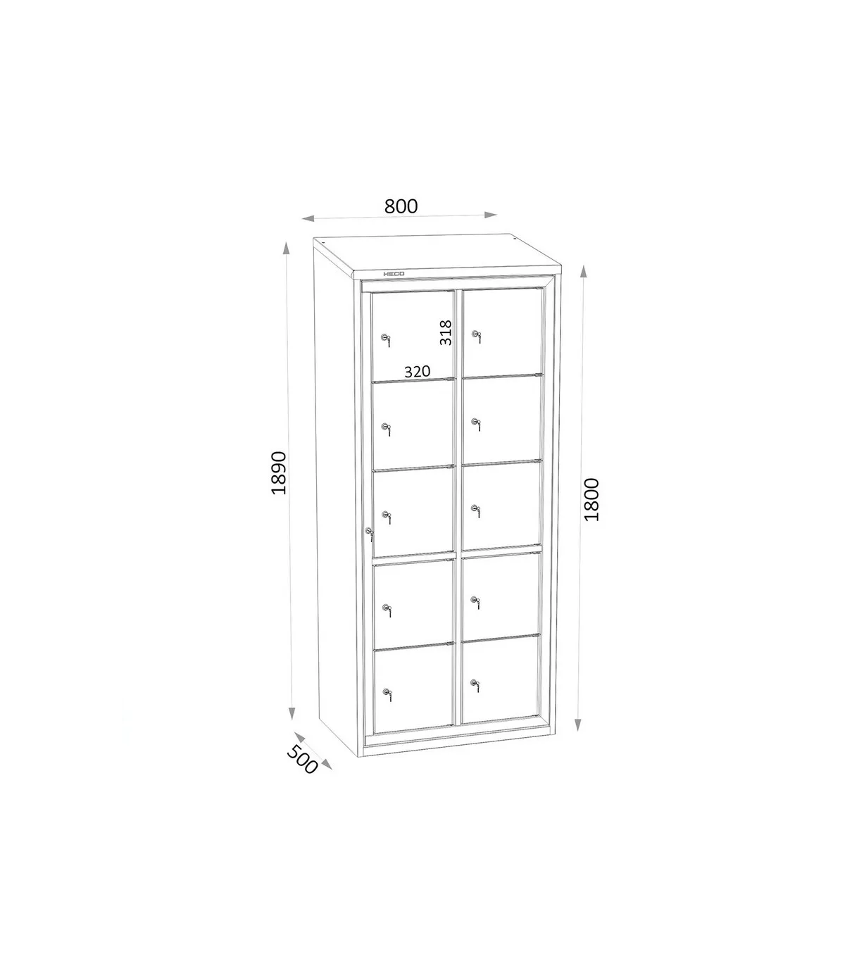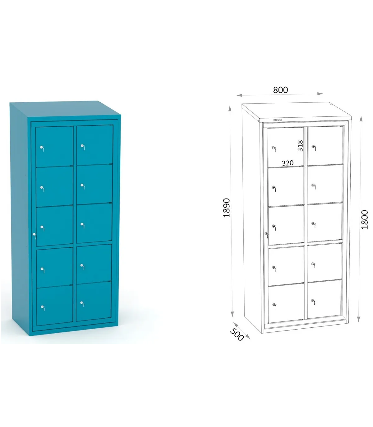 Mueble casillero / taquillas con  10+1 puertas 800x500x1800