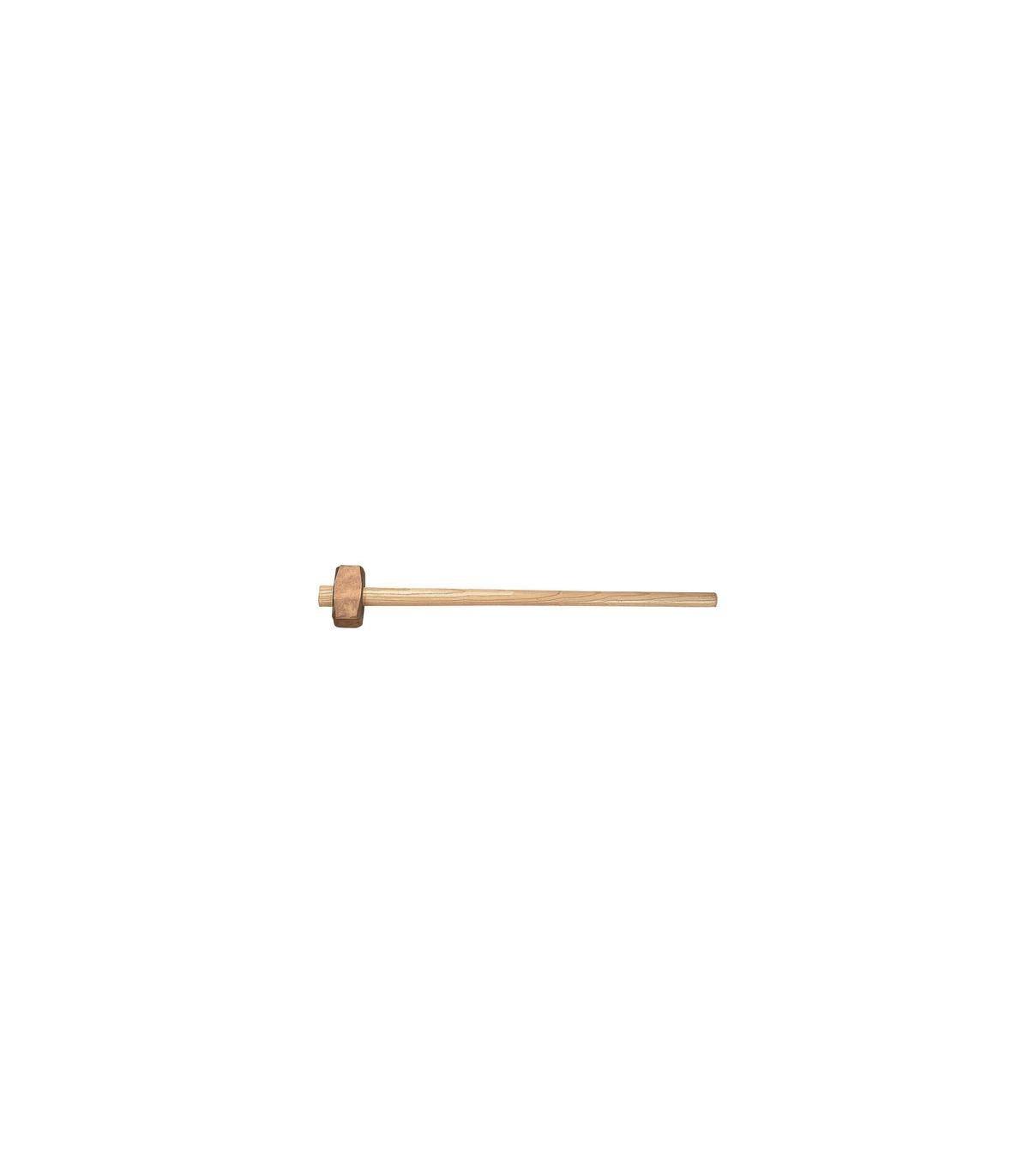 Maceta cuadrada antichispa, con cabeza fabricada en cobre y mango ergonómico de madera barnizado. Ambas partes unidas mediante fijación cónica, lo que imposibilitada la salida de la cabeza. Ideal para su empleo en siderurgia, minería, petroquímicas y lugares con riesgo de deflagración.