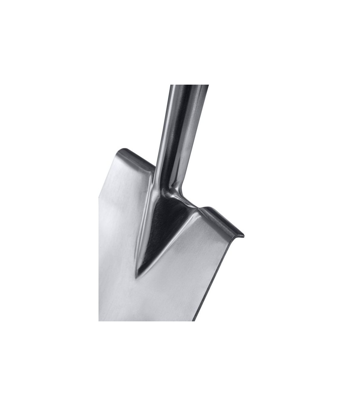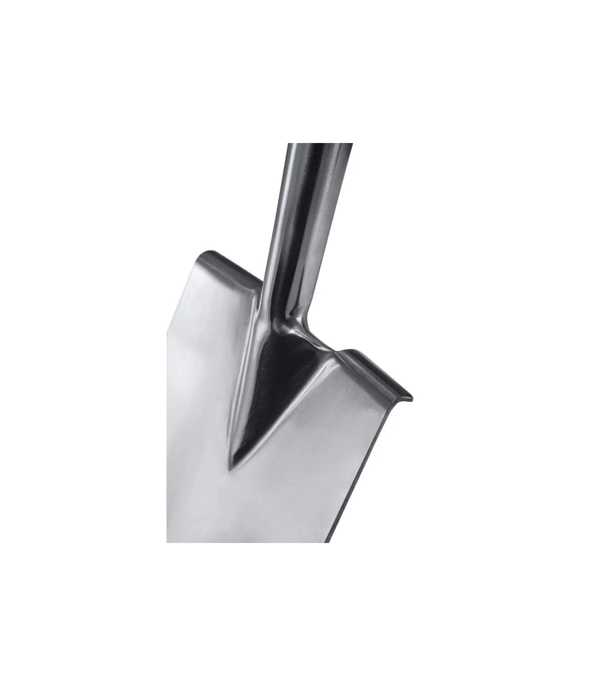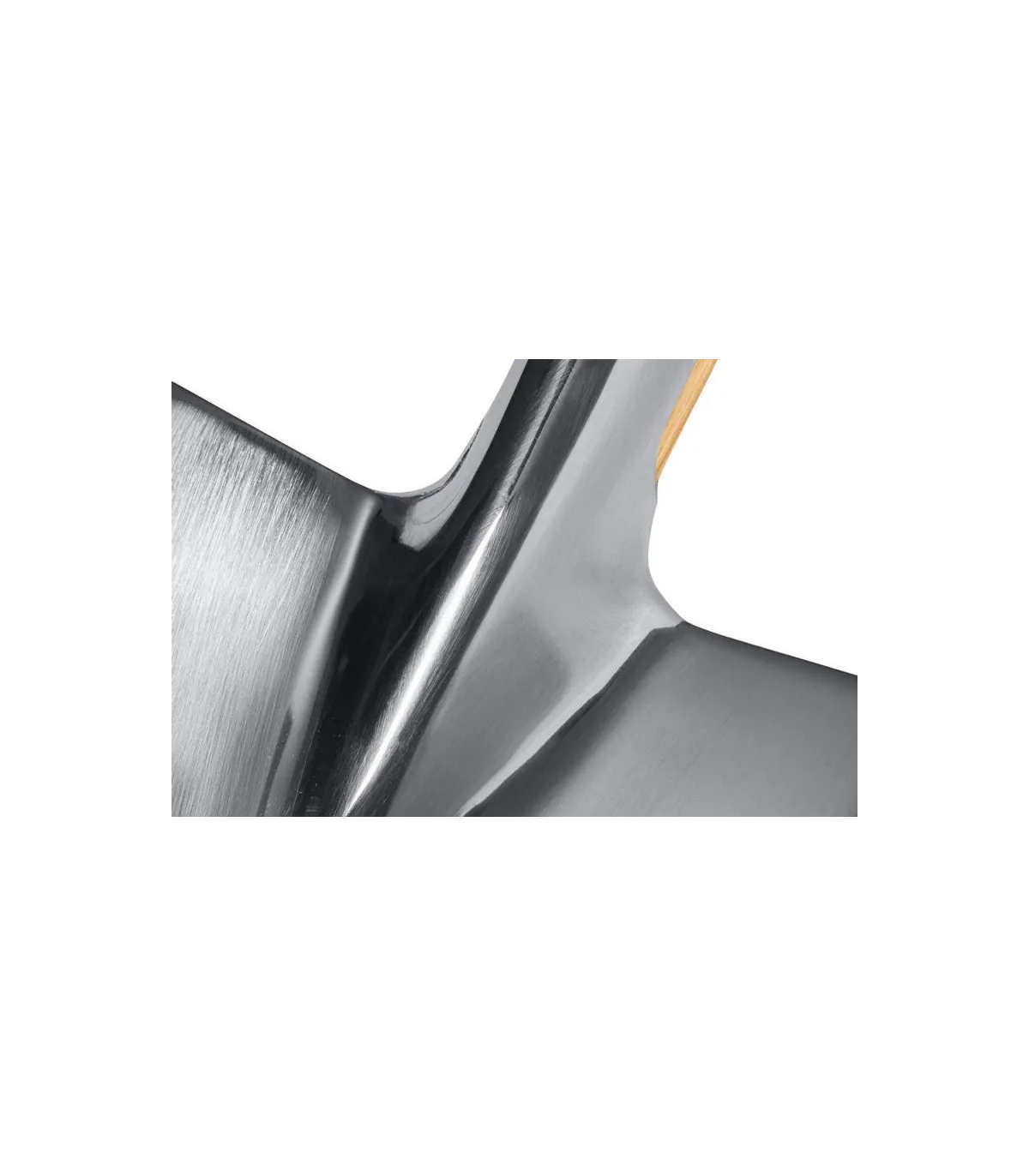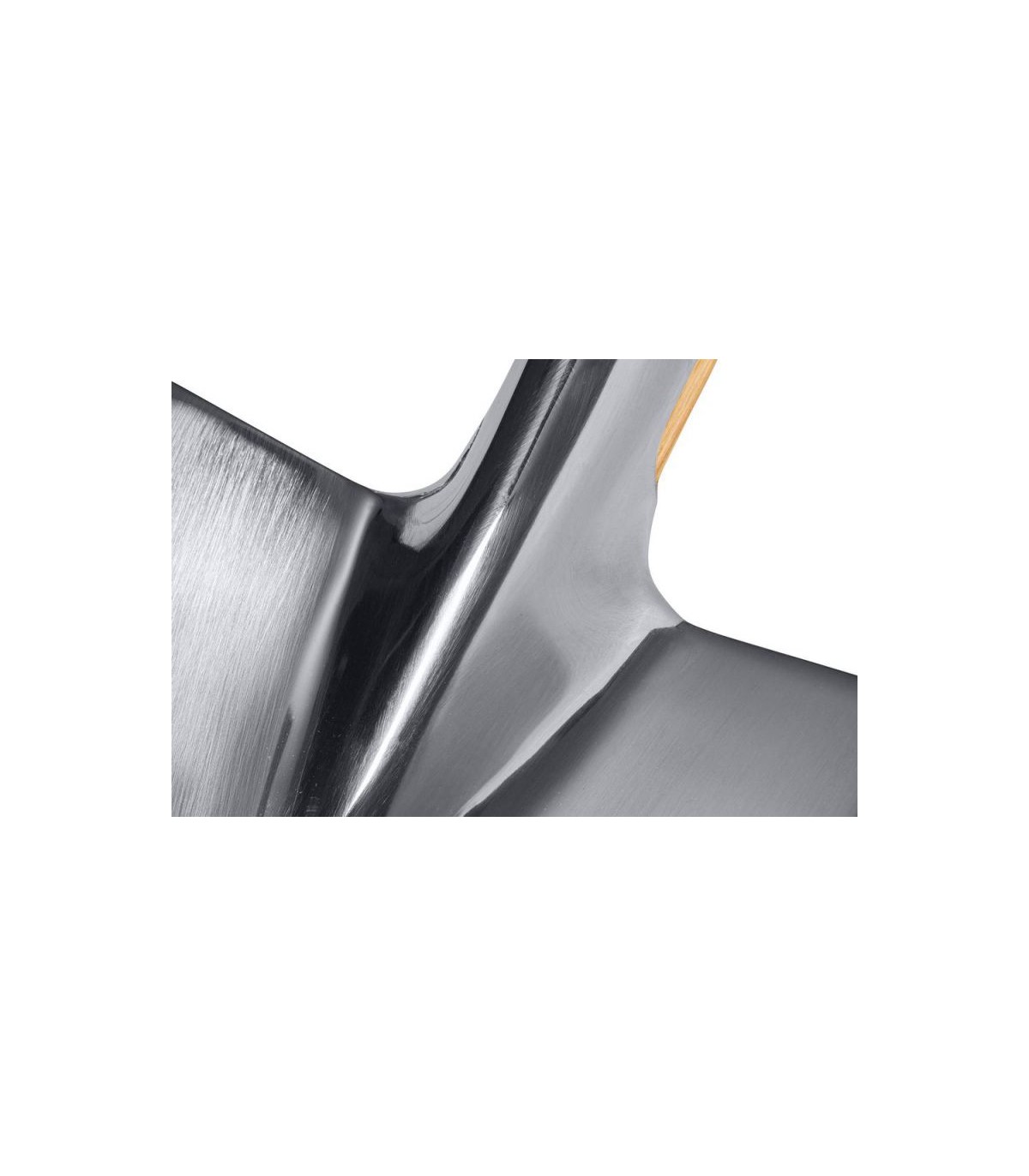 Pala estrecha cuadrada curvada en acero inoxidable, mango madera, terminación muleta.