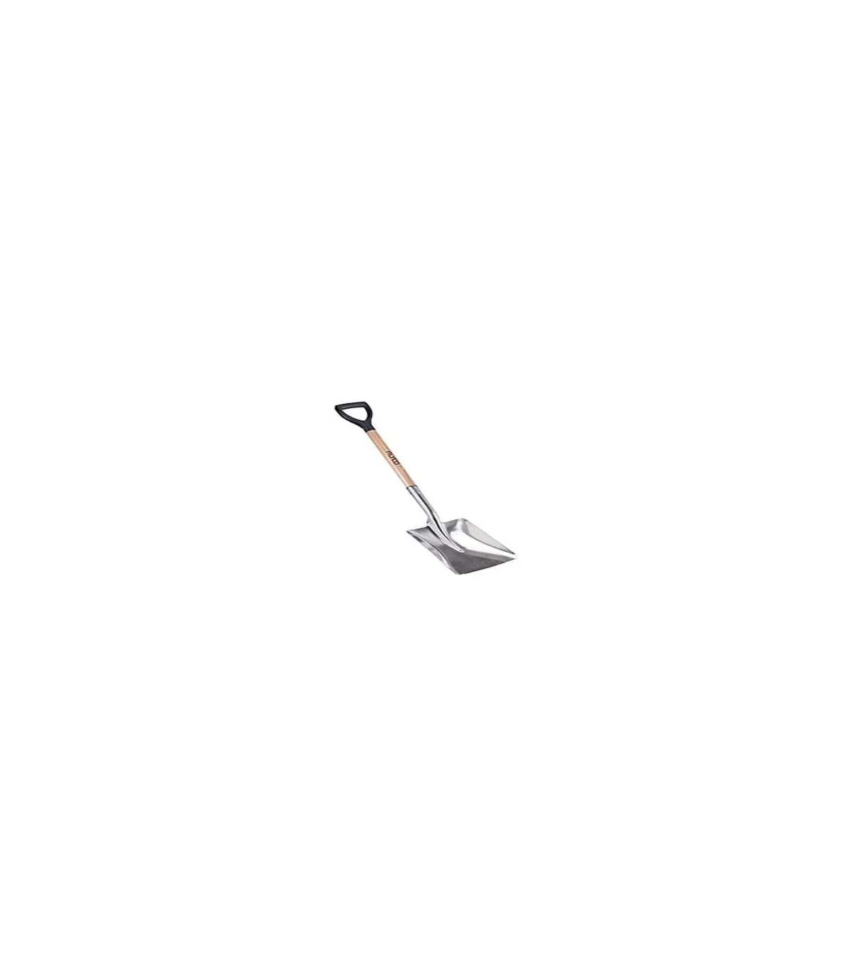Pala de aluminio, mango de madera con anilla en plástico duro.