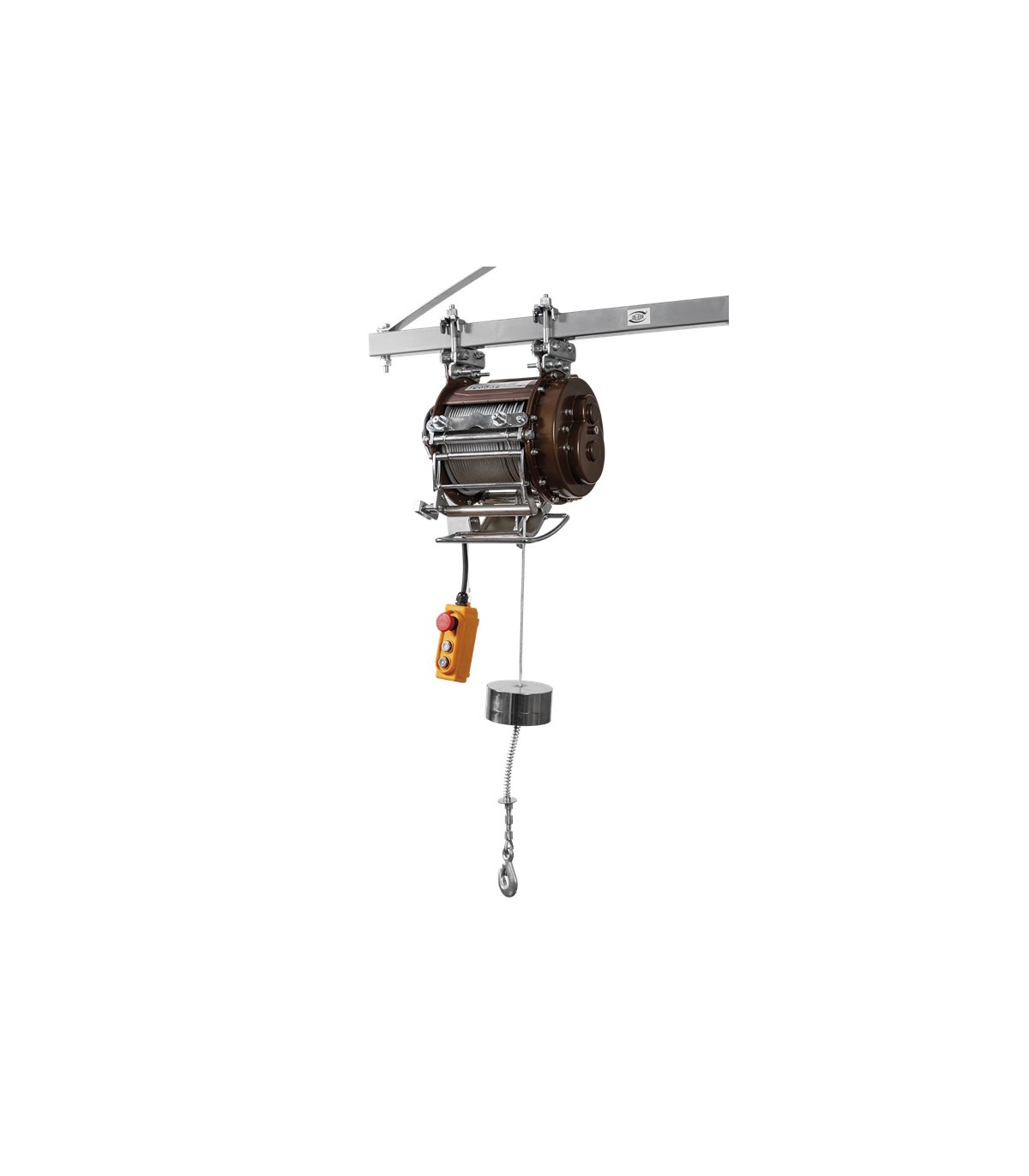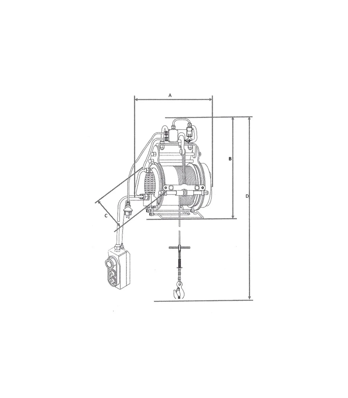 Polipasto eléctrico monofásico de cable 38 metros, gancho-gancho, capacidad carga 250 kgs (500 kgs a doble ramal)