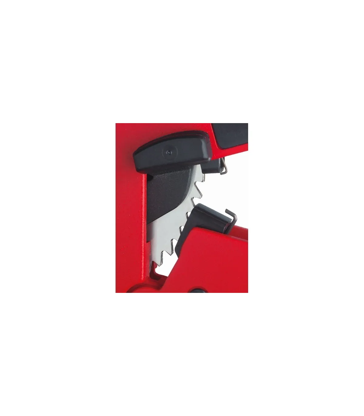 Cuchilla de acero con forma de V, con un teflonado especial, que garantiza cortes limpios y rápidos en tuberías de PVC.
