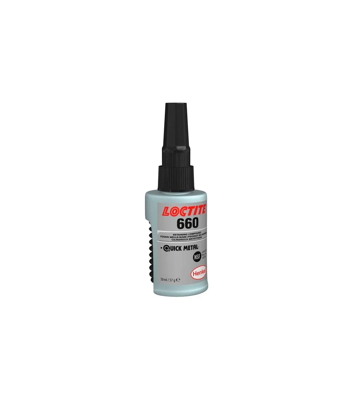 LOCTITE 660 está diseñado para la unión de componentes cilíndricos ajustados, particularmente donde se requieran rellenos de holguras sin necesidad de volver a mecanizar. El producto cura en ausencia de aire, al estar confinado entre superficies metálicas ajustadas, y evita el aflojamiento y las fugas a causa de impactos y vibraciones. LOCTITE 660 presenta unas excelentes características de curado en holguras y, además, es adecuado para calzos de retención.Permite la retención de componentes desgastados donde se requieran grandes rellenos de holguras tales como: ejes, alojamientos, chavetas, cojinetes, bujes, componentes del sistema de transmisión, accionamiento del árbol de levas, volante motor y el cigüeñal.Permite la reutilización de uniones cónicas, ejes estriados,chavetas y asientos de cojinetes desgastados.Adecuado para la retención de camisas o casquillos.P1 NSF Reg. n.º: 123704