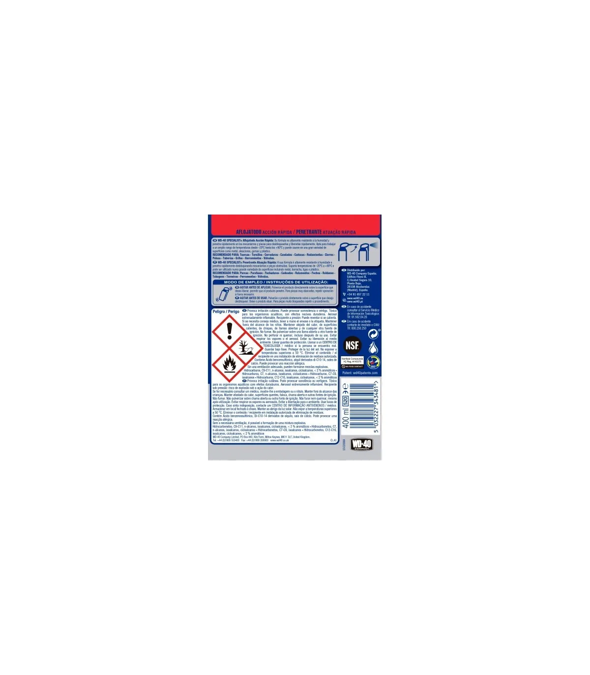 WD-40 Specialist Aflojatodo 400ml Doble Acción
