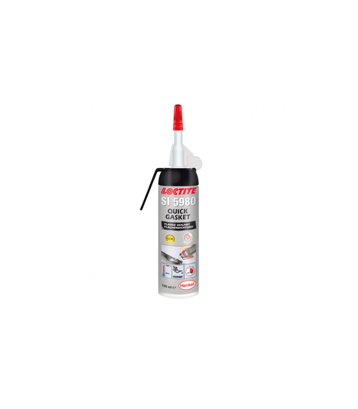 LOCTITE SI 5980 es un sellador de bridas especialmente diseñado para aplicaciones de formación de juntas. Soporta ensayos a bajas presiones después de montadas las juntas. Algunas de sus aplicaciones habituales incluyen tapas de metal estampado (tapas del engranaje de distribución y cárter de aceite) donde se necesite buena resistencia a aceites y la habilidad de soportar movimiento en las juntas. El producto es líder en salud y seguridad.Sellador de bridas para bridas flexiblesBuena resistencia al glicolExcelente resistencia a aceitesColor negroLíder en salud y seguridad