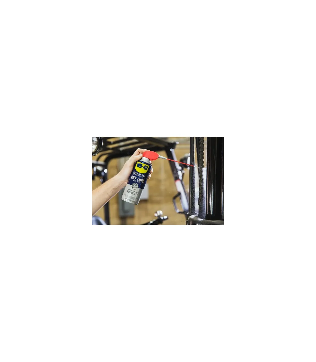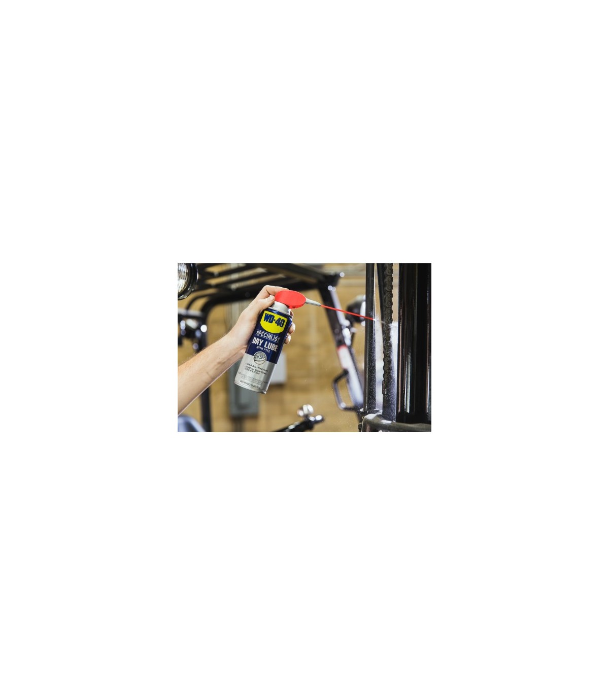 Este producto contiene PTFE que aporta mayor lubricación, dejando una película seca que no atraerá suciedad, polvo ni aceite.