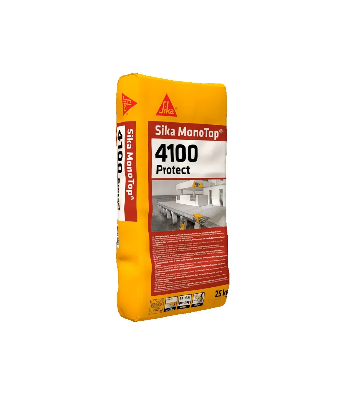 Sika MonoTop®-4100 Protect es un mortero de reparación cementoso, monocomponente, reforzado con fibras, de baja retracción. Está diseñado para reparar, proteger e impermeabilizar las estructuras de hormigón.