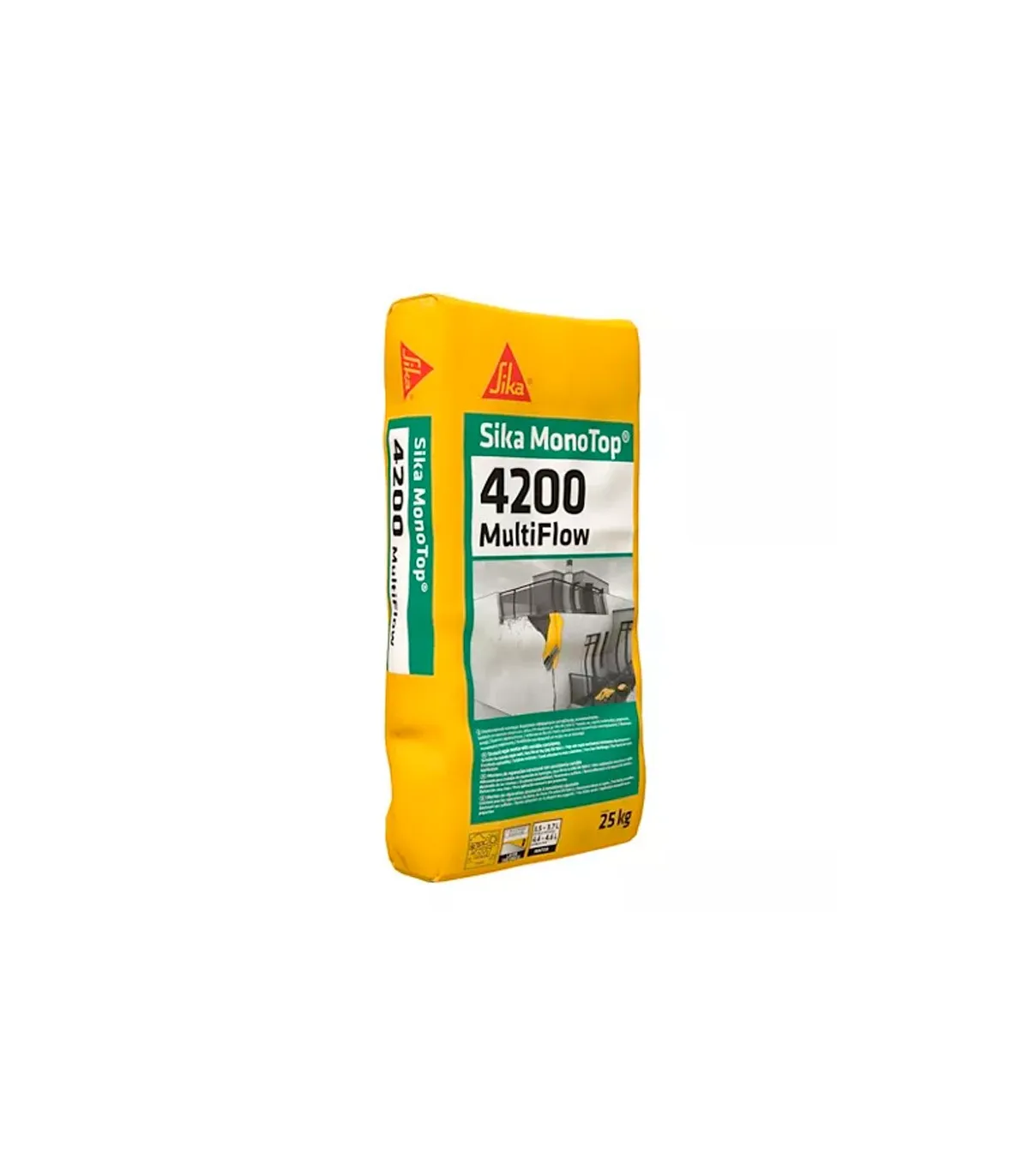 Sika MonoTop®-4200 Multi Flow es un mortero cementoso monocomponente, sulforresistente, aplicable a mano, bombeable y proyectable, para la reparación y el refuerzo de estructuras. Alcanza altas resistencias iniciales y finales. Adecuado para todo tipo de estructuras de hormigón en edificación u obra civil, así como estructuras marinas. Espesor de aplicación de hasta 80 mm (60 mm con consistencia fluida)