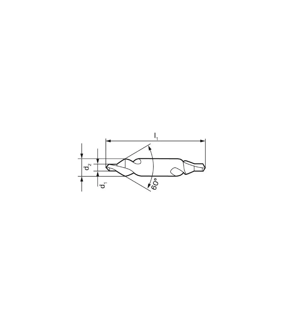 Broca de centrar HSS, DIN 333-A, DIN 333-A, angulo de avellanado 60°, vástago cilíndrico, ranuras vaporizadas, sin recubrimiento,nota:de la pieza completa rectificadas y destalonadas. Para perforaciones de centrado simples según DIN 332, forma A, broca estándar para generar perforaciones de centrado (sin avellanado de protección).