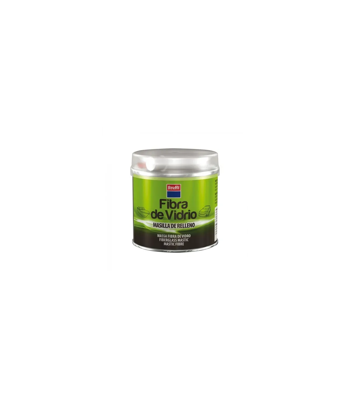 Masilla de poliéster insaturado para reparación de carrocerías de automóviles reforzada con fibra de vidrio. Endurece rápidamente al mezclarlo con su endurecedor.