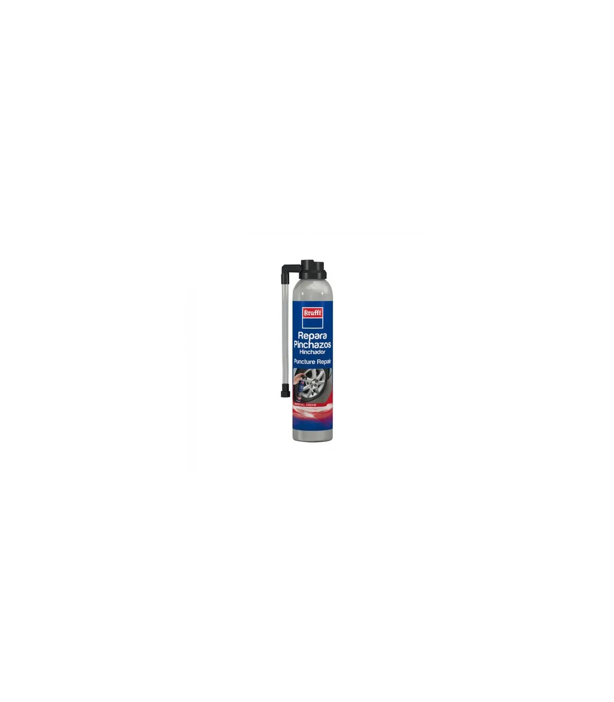 Soluciona un pinchazo en menos de un minuto y sin necesidad de herramientas. Con sólo pulsar el spray a través de la válvula, el pinchazo queda sellado y el neumático con la presión necesaria para seguir en marcha.