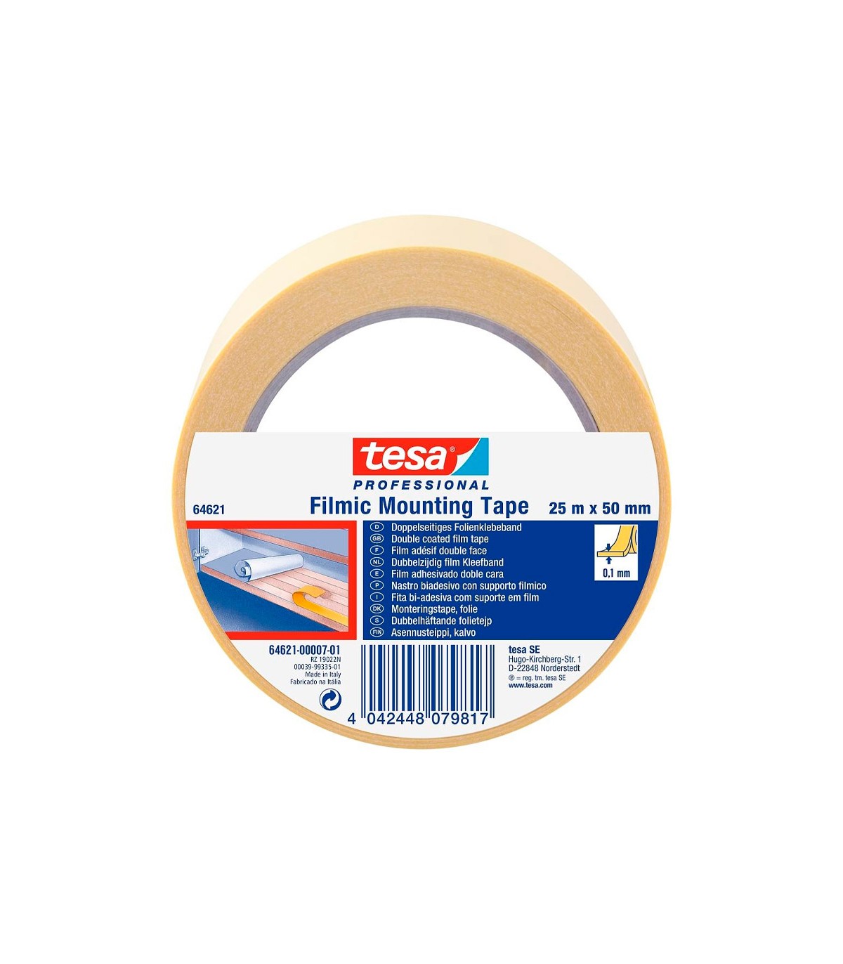 tesa 64620 es una cinta de doble cara que se compone de un film de PP blanco y una masa adhesiva de caucho sintético (hotmelt). La cinta se caracteriza por estar libre de disolventes y ofrece un alta tack. Además dispone de un protector de papel siliconado
