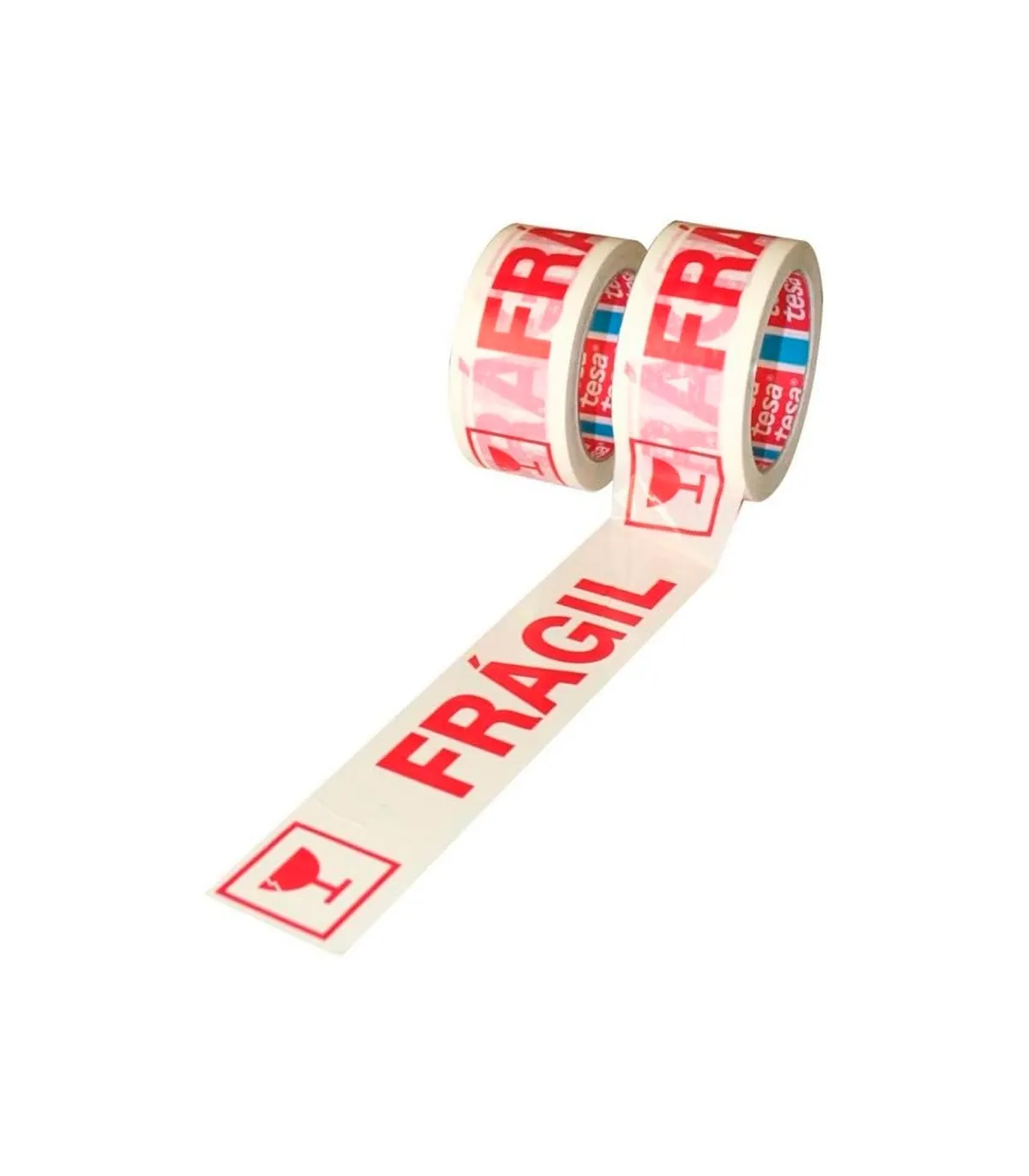 Cinta de embalaje impresa con la indicación "FRAGIL" para advertencia de contenido de materiales frágiles en el interior