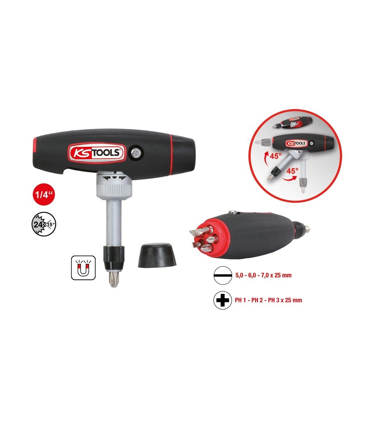 Destornillador portapuntas mango transformable KS TOOLS