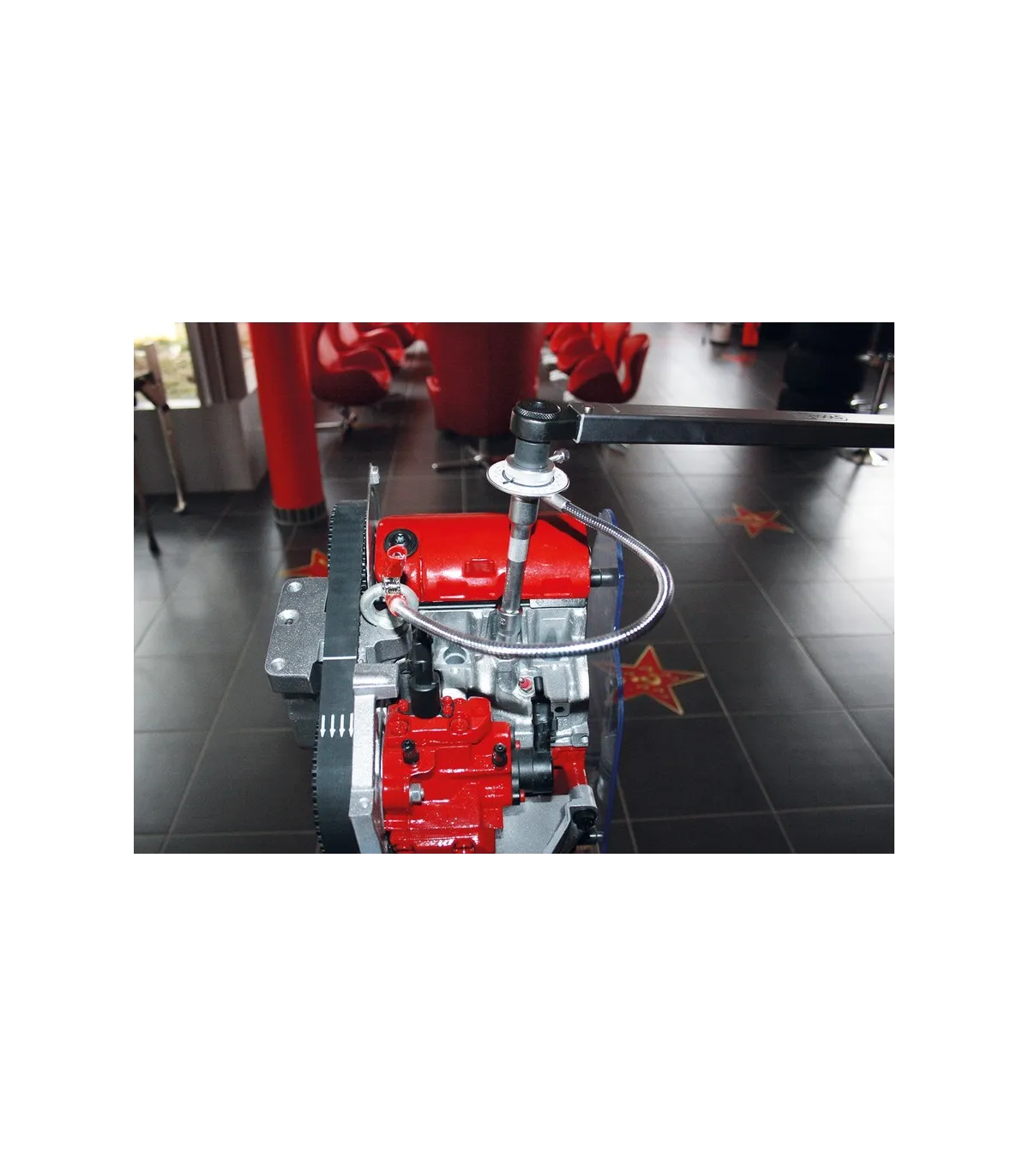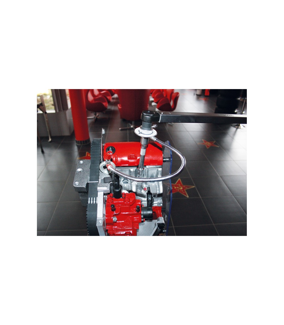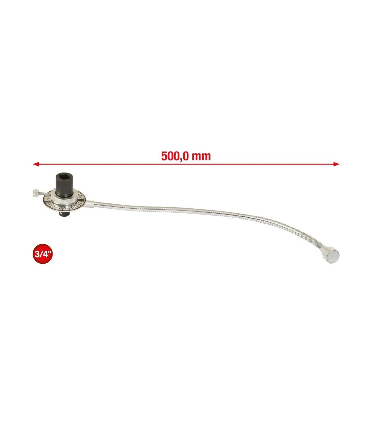 Útil para el apriete en grados de tornillos según especificaciones determinadas por los fabricantes de vehículos y maquinaria. Apriete realizado mediante carraca o llave dinamométrica de 3/4".