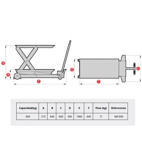 Plataforma ó mesa elevadora de base 840x480mm, capacidad 400 kgs-