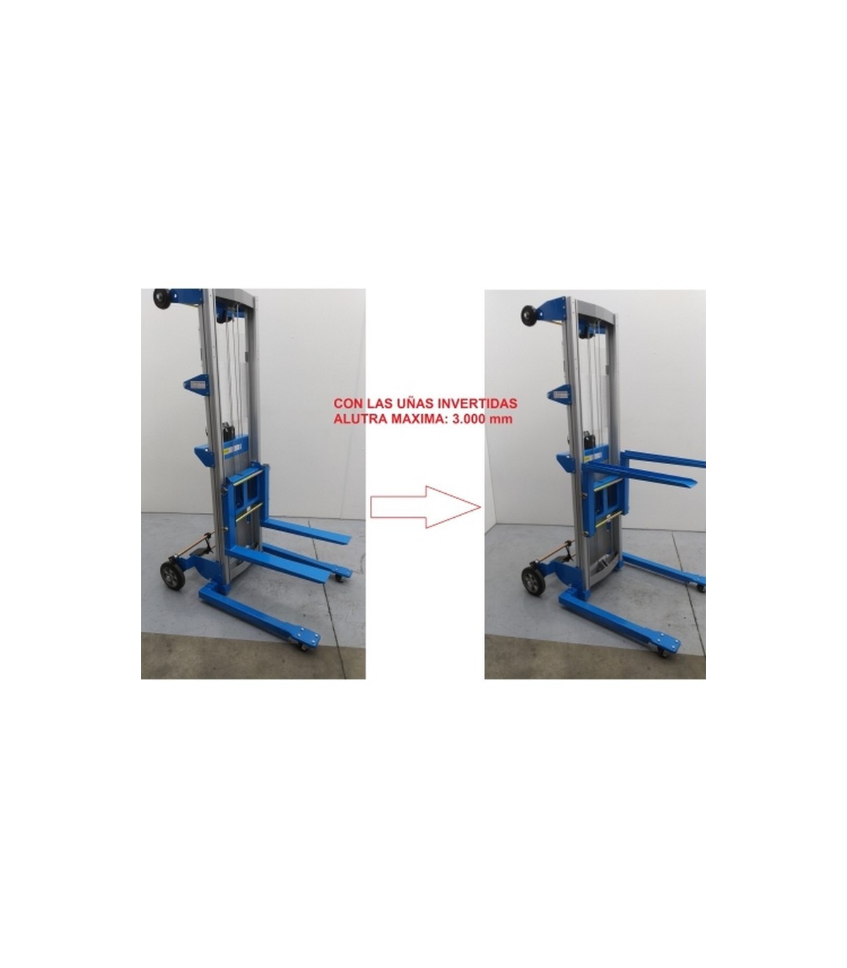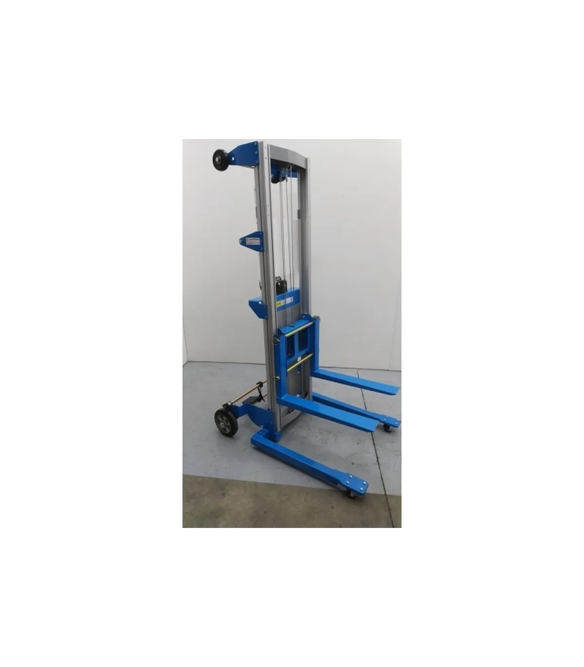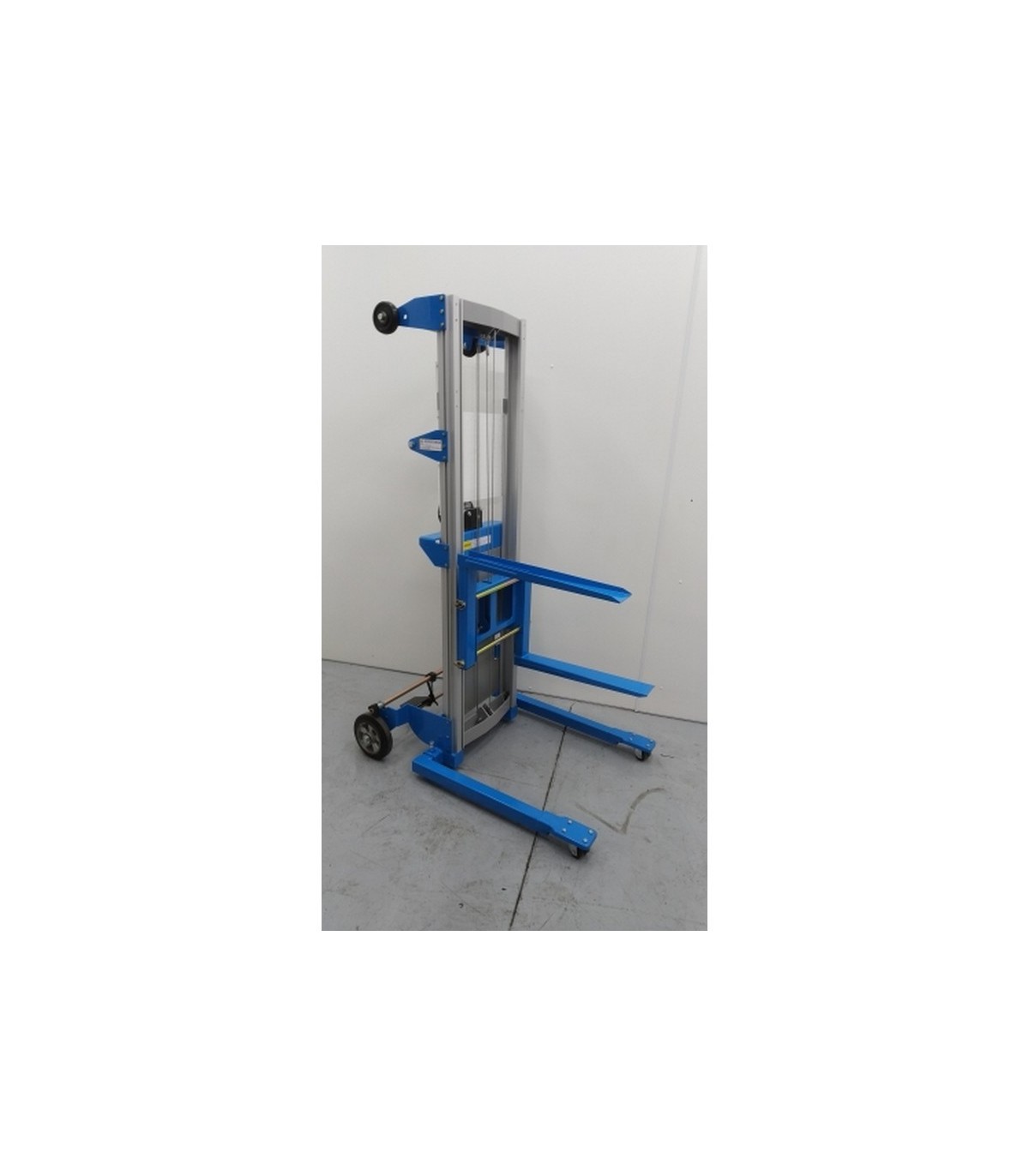Apilador compacto fabricado en aluminio. muy resistente y ligero, especialmente diseñado para trabajos de carga y descarga de hasta 180 Kg y a una altura de 2,5 m o 3 m apto para la colocación de aire acondicionado, persianas, etc, la solución rápida y segura para sus necesidades en altura.