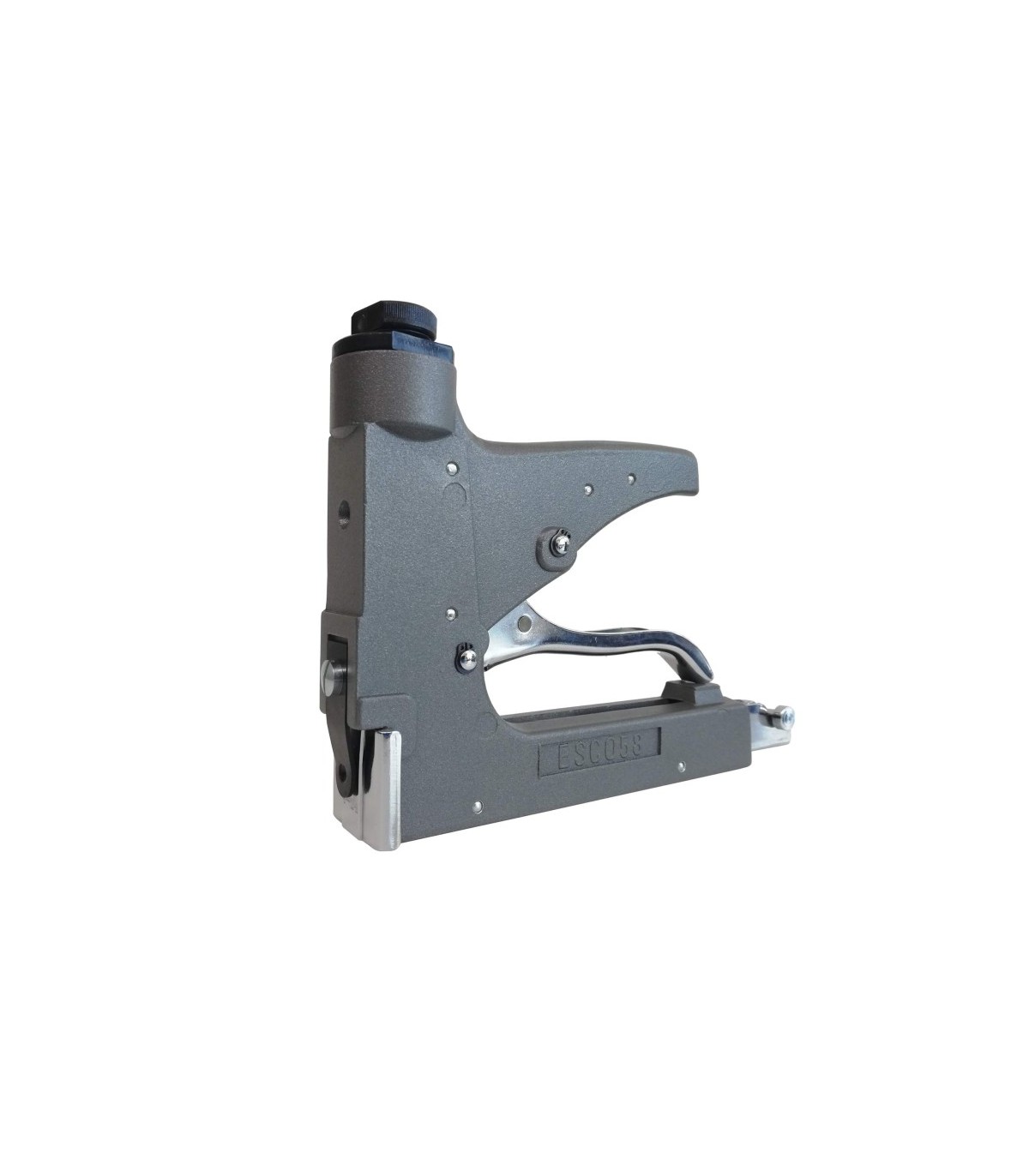 La grapadora clavadora profesional ESCO 58 es una estupenda herramienta manual muy robusta destinada a la decoración, tapicería, colocación de moquetas, etiquetaje sobre cajas de madera, clavado de pantallas en serigrafía, así como aquellos trabajos en donde se precise un clavado rápido.