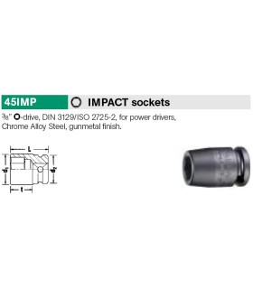 Llave de vaso de impacto de cuadrado 1/2" (12.5mm) y boca hexagonal de 14 mm. Fosfatada. Version corta, largo total 38mm (aprox)