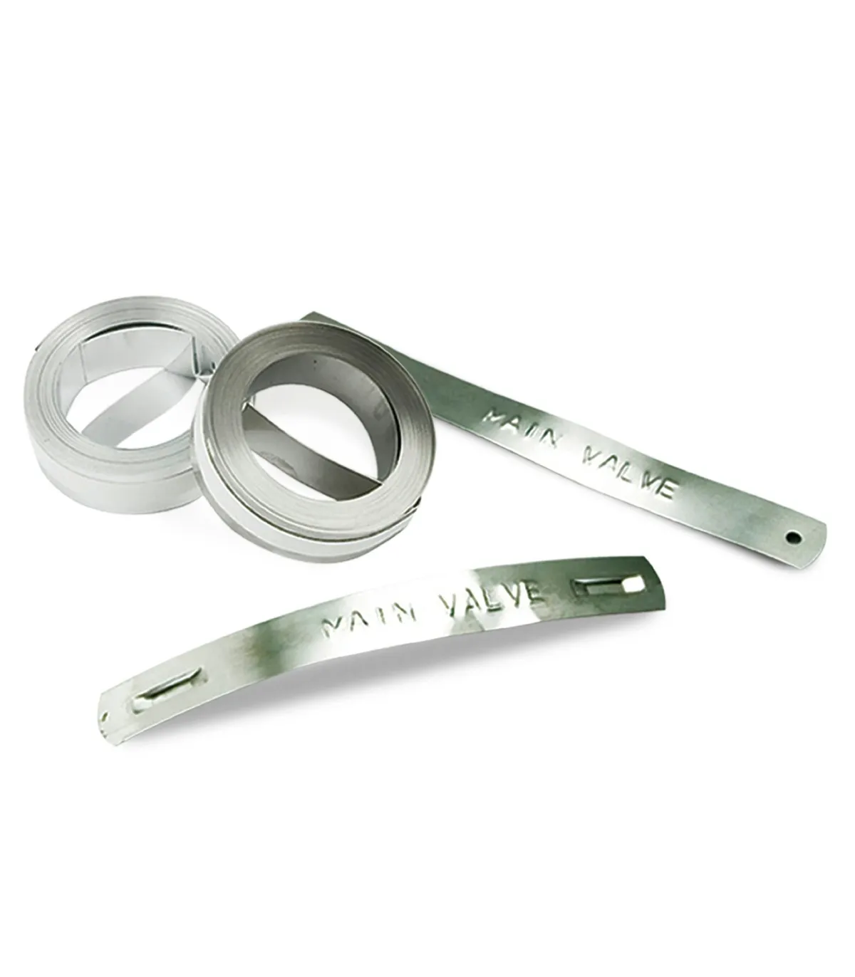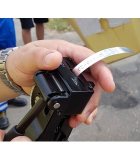 Herramienta para crear etiquetas por grabación en relieve sobre cinta metálica, inoxidable o aluminio, con o sin adhesivo. Basta embridar, remachar o adhesivar para obtener etiquetas o marcaje de larga duración en...