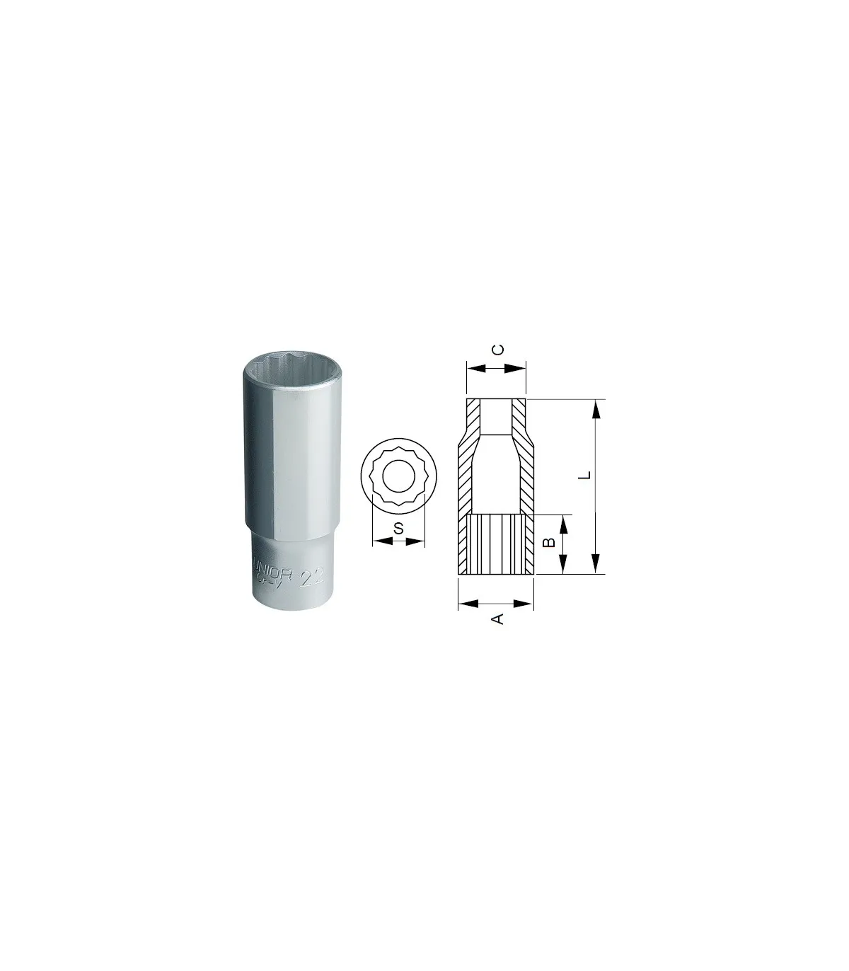 LLAVE VASO 1/2 LARGA 15MM BIHEX