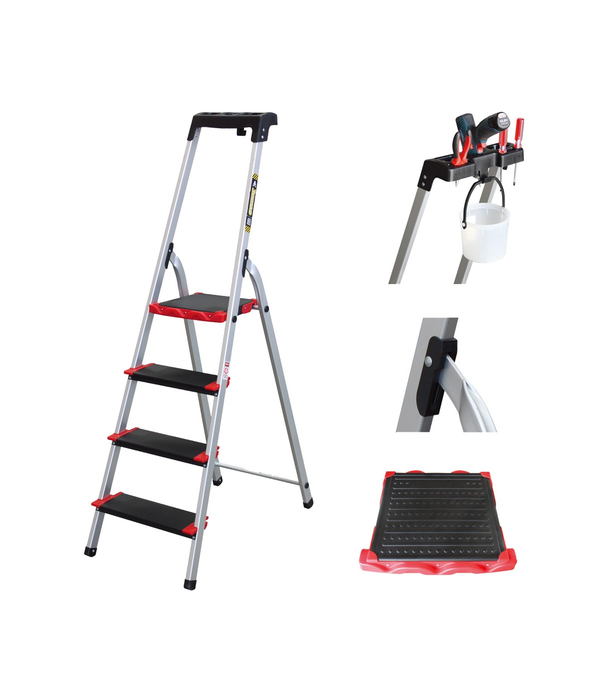 ESCALERA ALUMINIO TIJERA 4 Peld + Bandeja