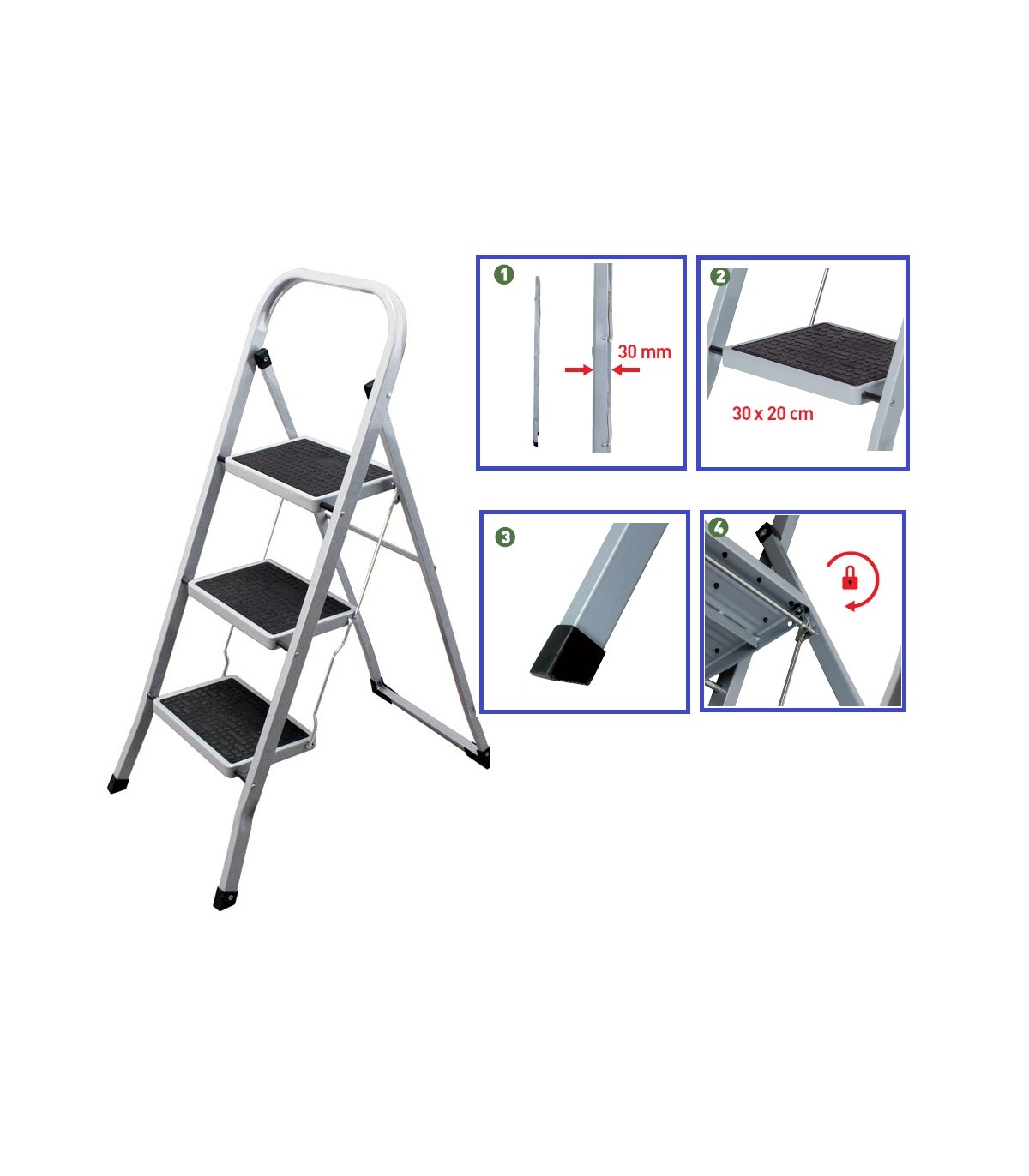 ESCALERA TIJERA (TABURETE) ACERO 3 PELDAÑOS 0,70m
