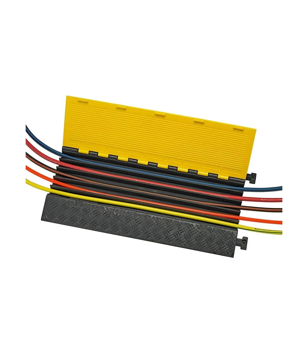 Los protectores rampa cubrecables con 5 canales muy útil durante obras en calles e industrias  donde es necesario pasar varios cables, de muy fácil instalación.
