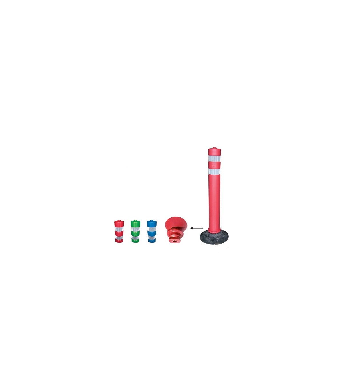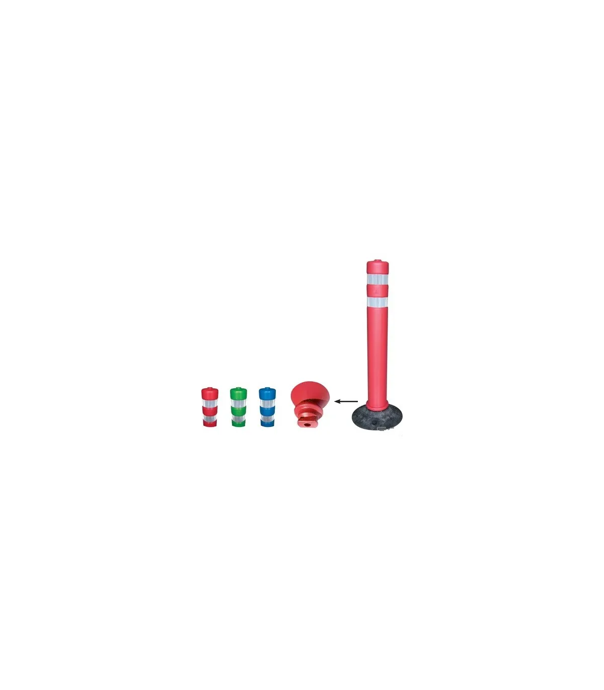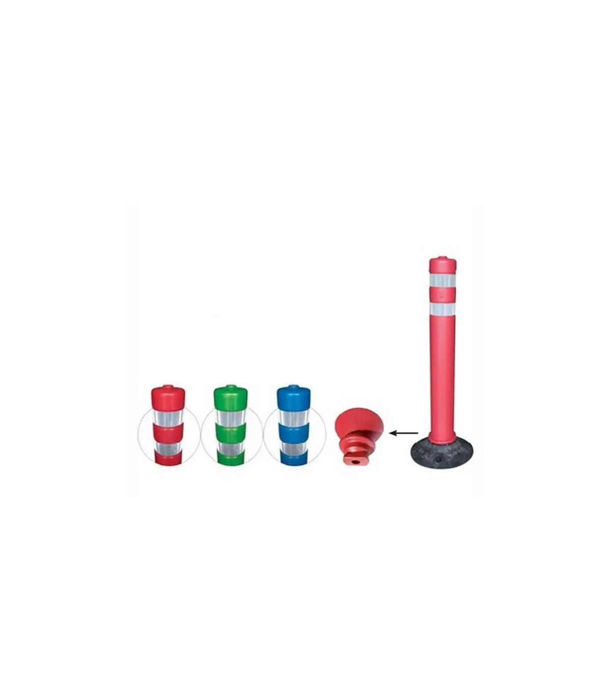 Baliza desmontable con 2 bandas reflectantes, base de caucho con hendiduras para el fácil anclaje con tornillos.