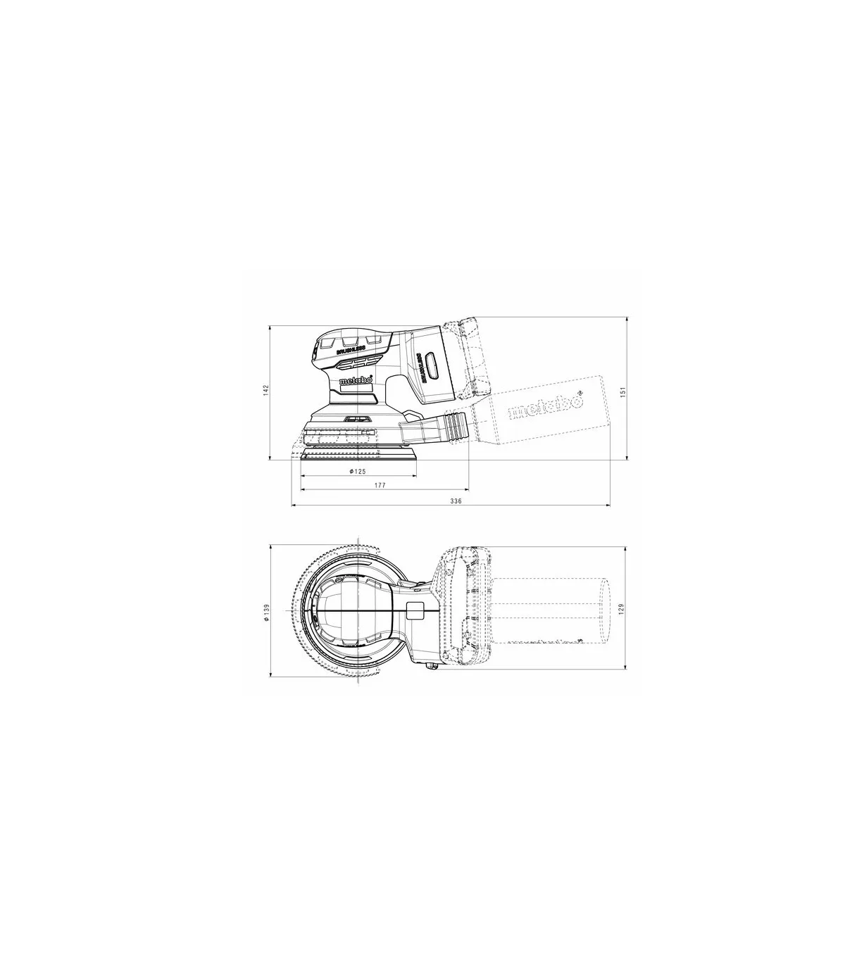 SXA 18 LTX 125 BL (600146840) Lijadora excéntrica de batería 18V; metaBOX 215; con plato abrasivo 125 mm