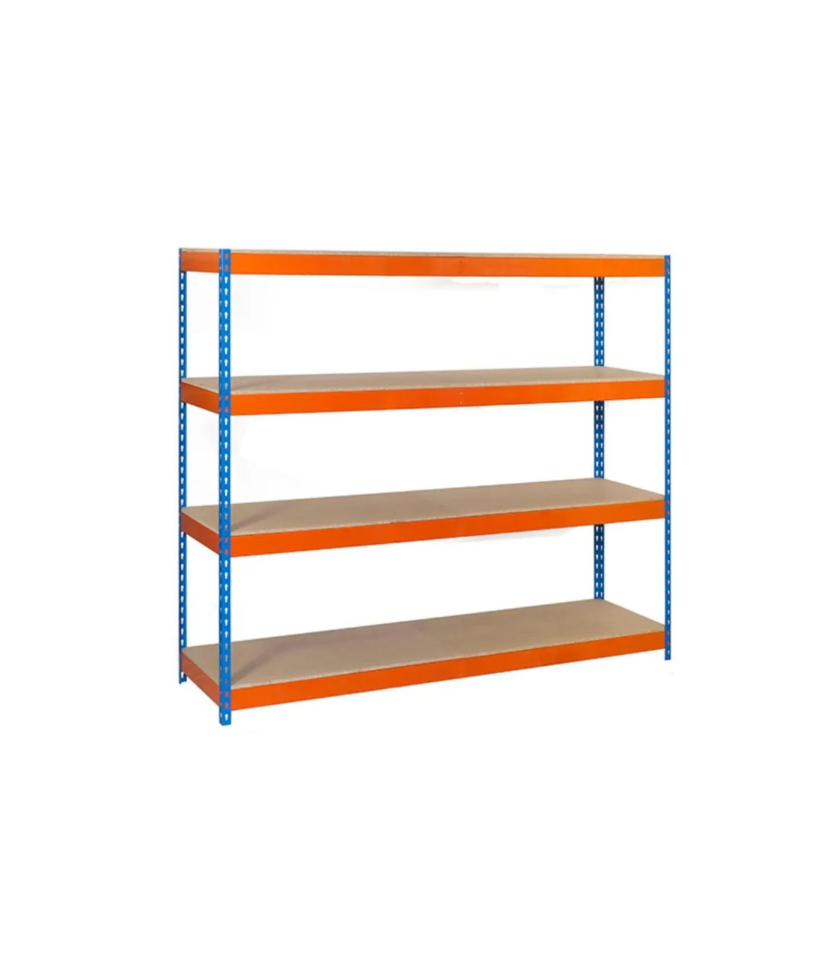Estanteria para almacen sin tornillos, con 4 baldas de madera, listo para montar y usar.