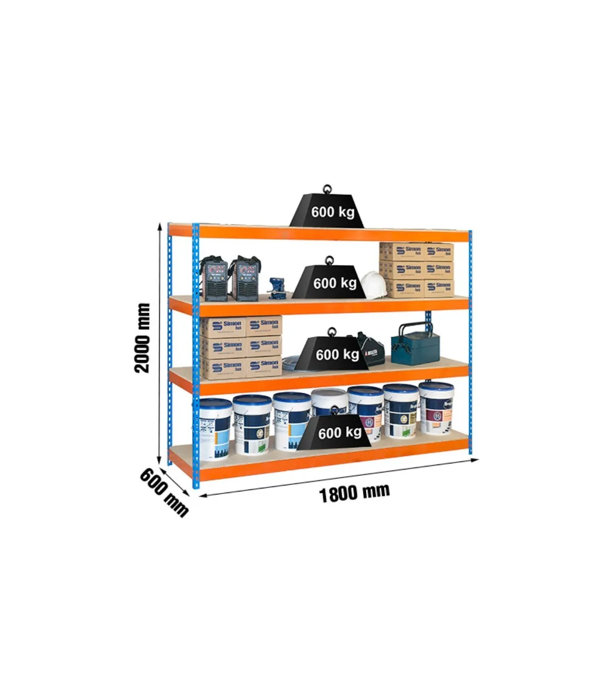 KIT ESTANTERIA SIMONFORTE 1806-4 2000x1800x600 cap. 600kg 4 NIVELES, CON MADERA