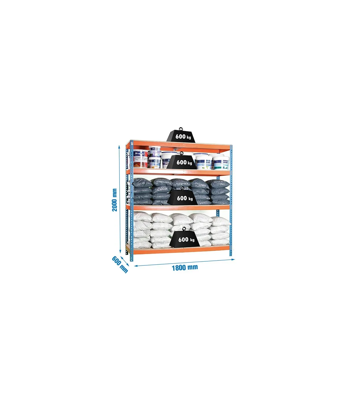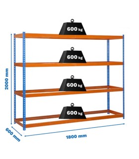 Capacidad de carga: hasta 600 kg repartidos uniformemente por estante.