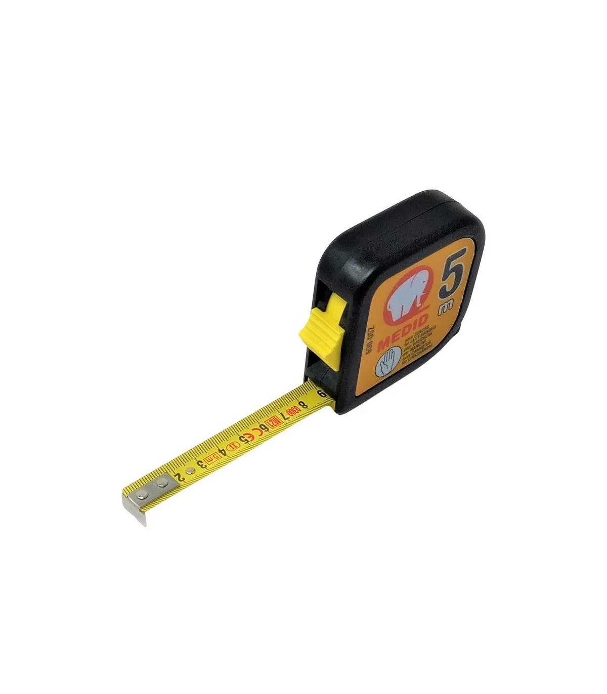 Metro para personas zurdas de 5 metros, ancho de cinta 19mm, con freno y clip bolsillo