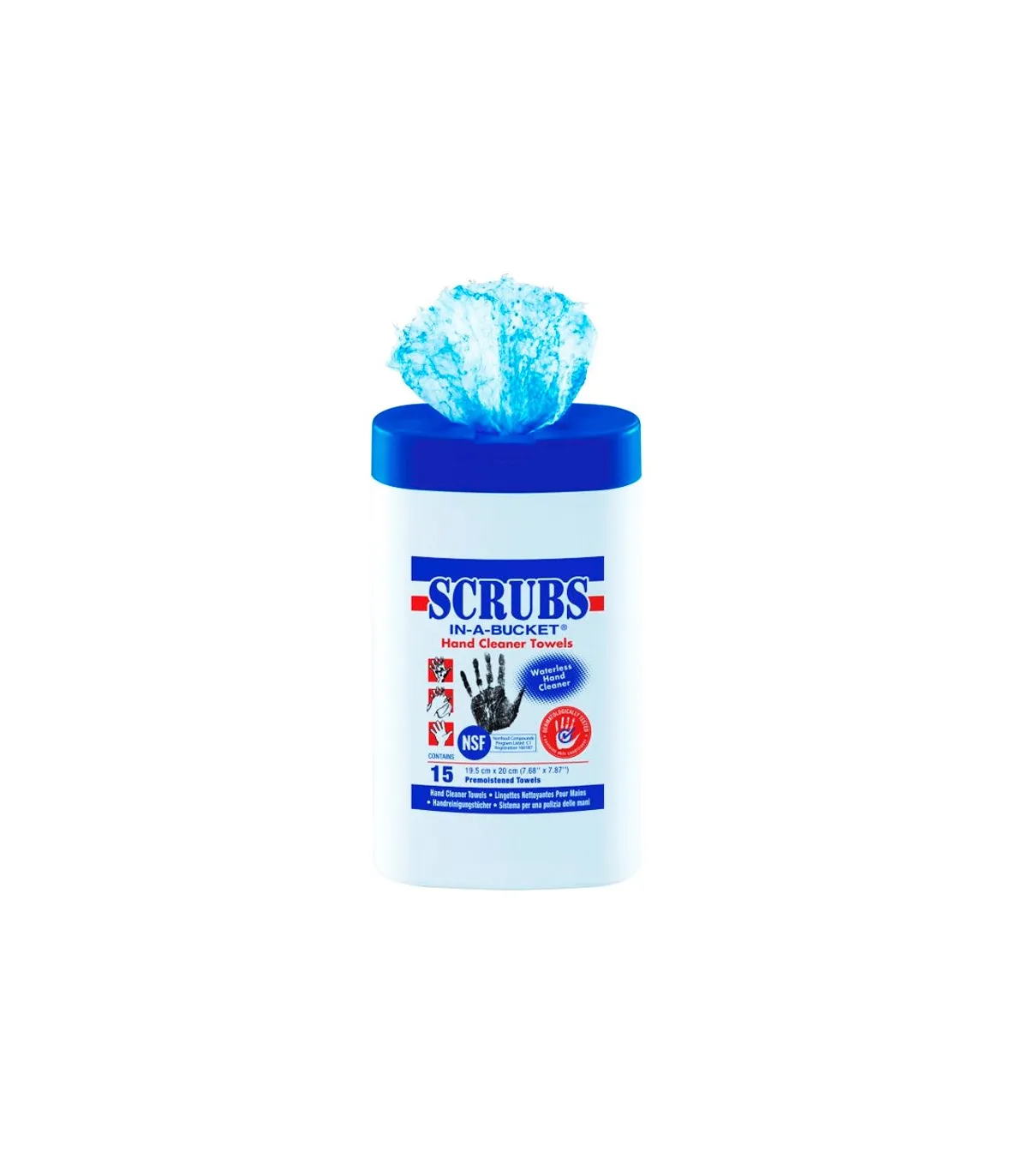 Las toallas lavamanos SCRUBS contienen una fórmula eficaz de limpieza, de base cítrica y fragancia fresca, que permite eliminar la suciedad más resistente.