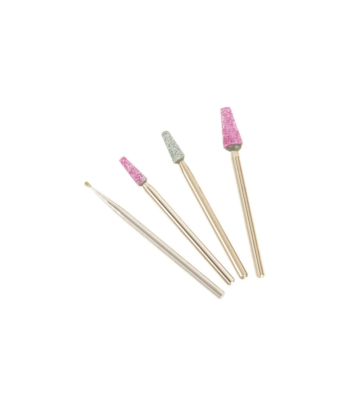 Está compuesto por un maletín para poderlo transportar fácilmente, 6 accesorios: 1 punta para grabar, 3 muelas y dos plantillas.
