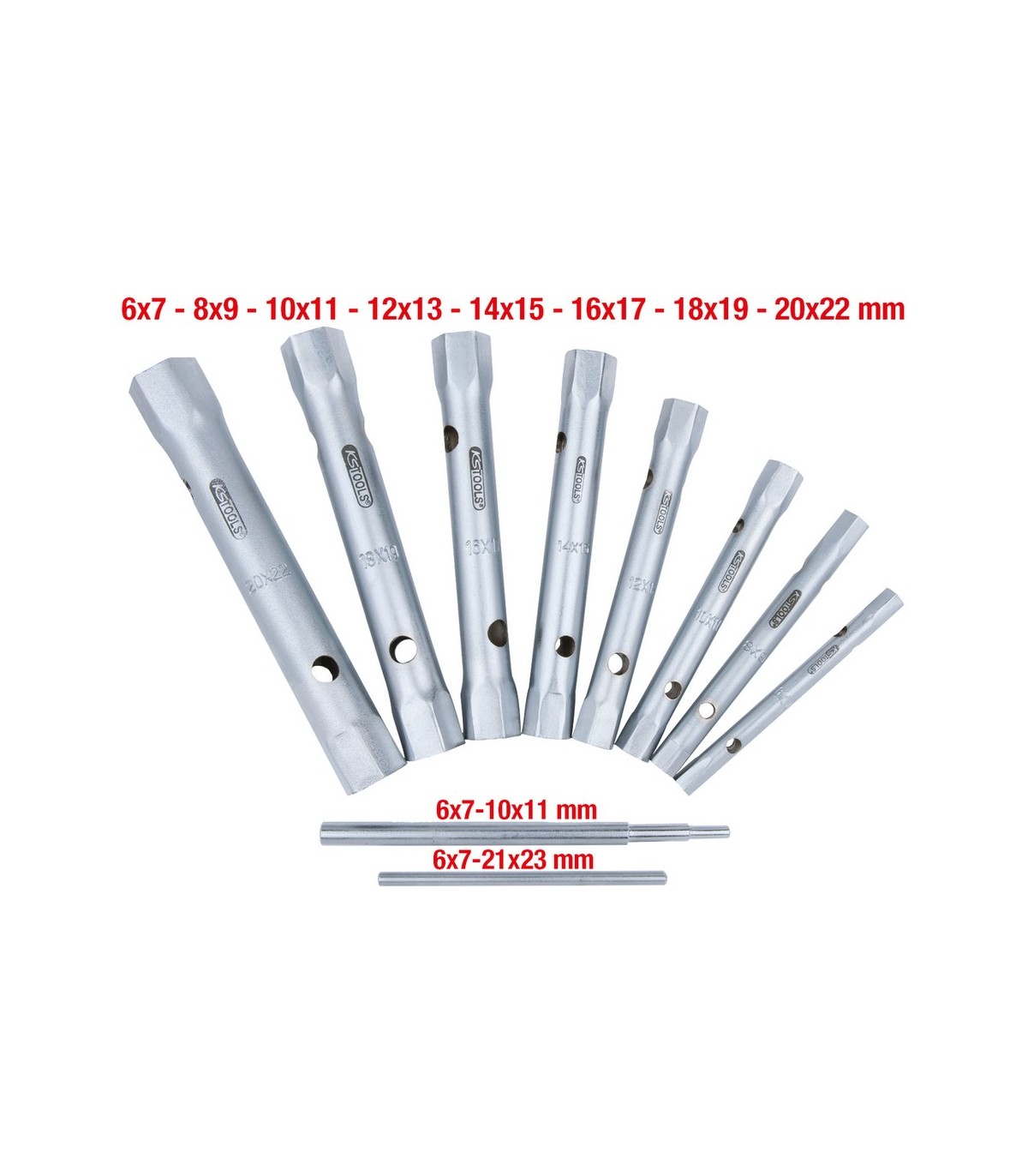 JUEGO 8 LLAVES TUBO CR-V CHAPA HUECAS 6x7 A 20x22