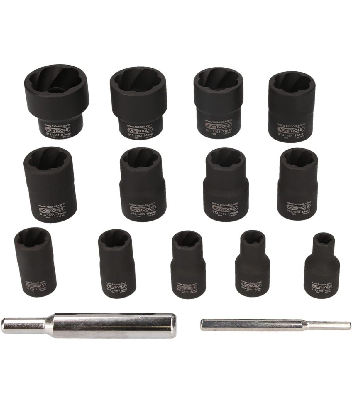 Completo juego de vasos de impacto -NO APTO MAQUINA- para extraer tornillos cabeza  hexagonal y tuercas dañadas o estropeadas de difícil