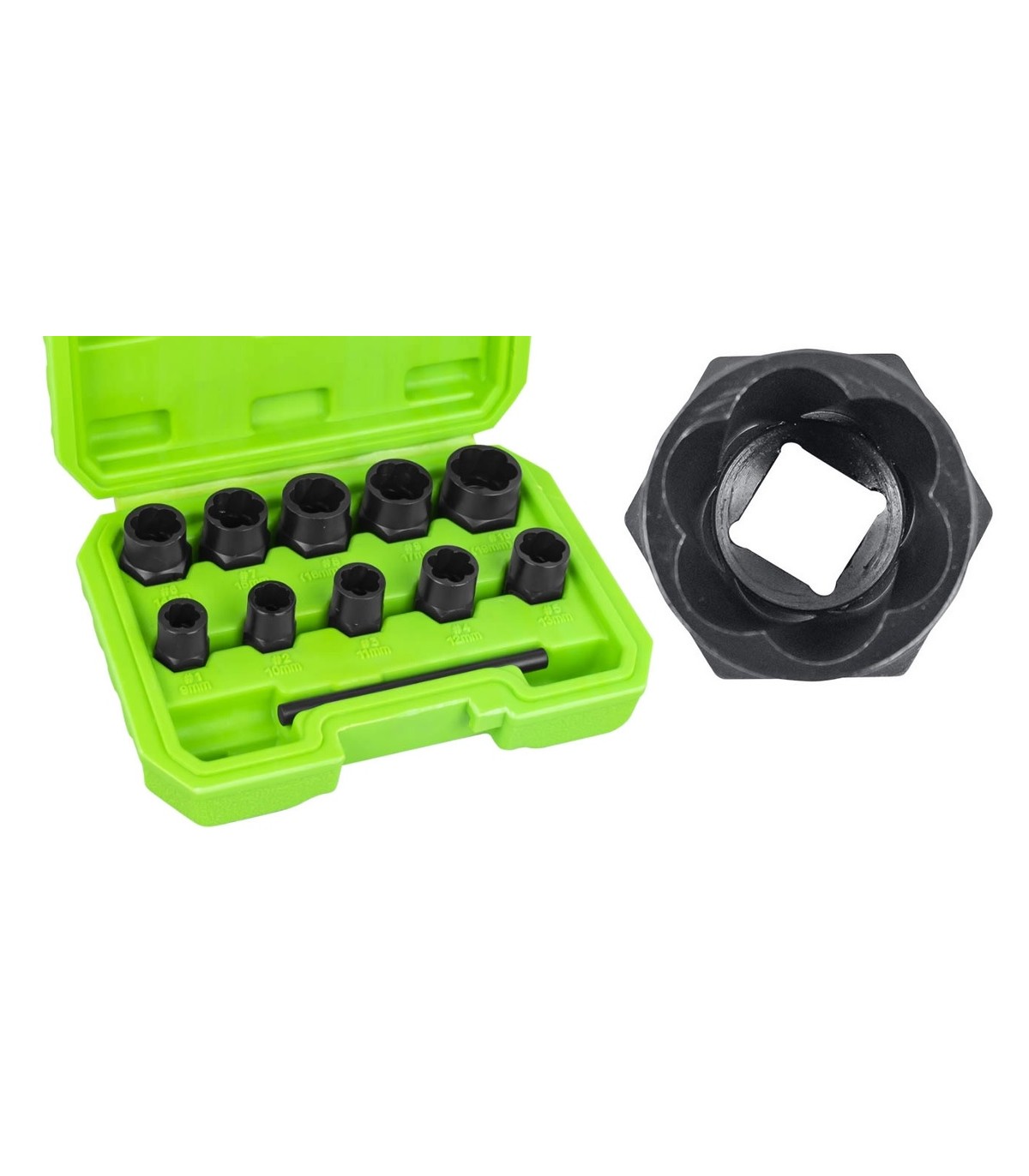 JUEGO 10 EXTRACTORES 3/8" TORNILLOS/TUERCAS DE 10 A 19MM