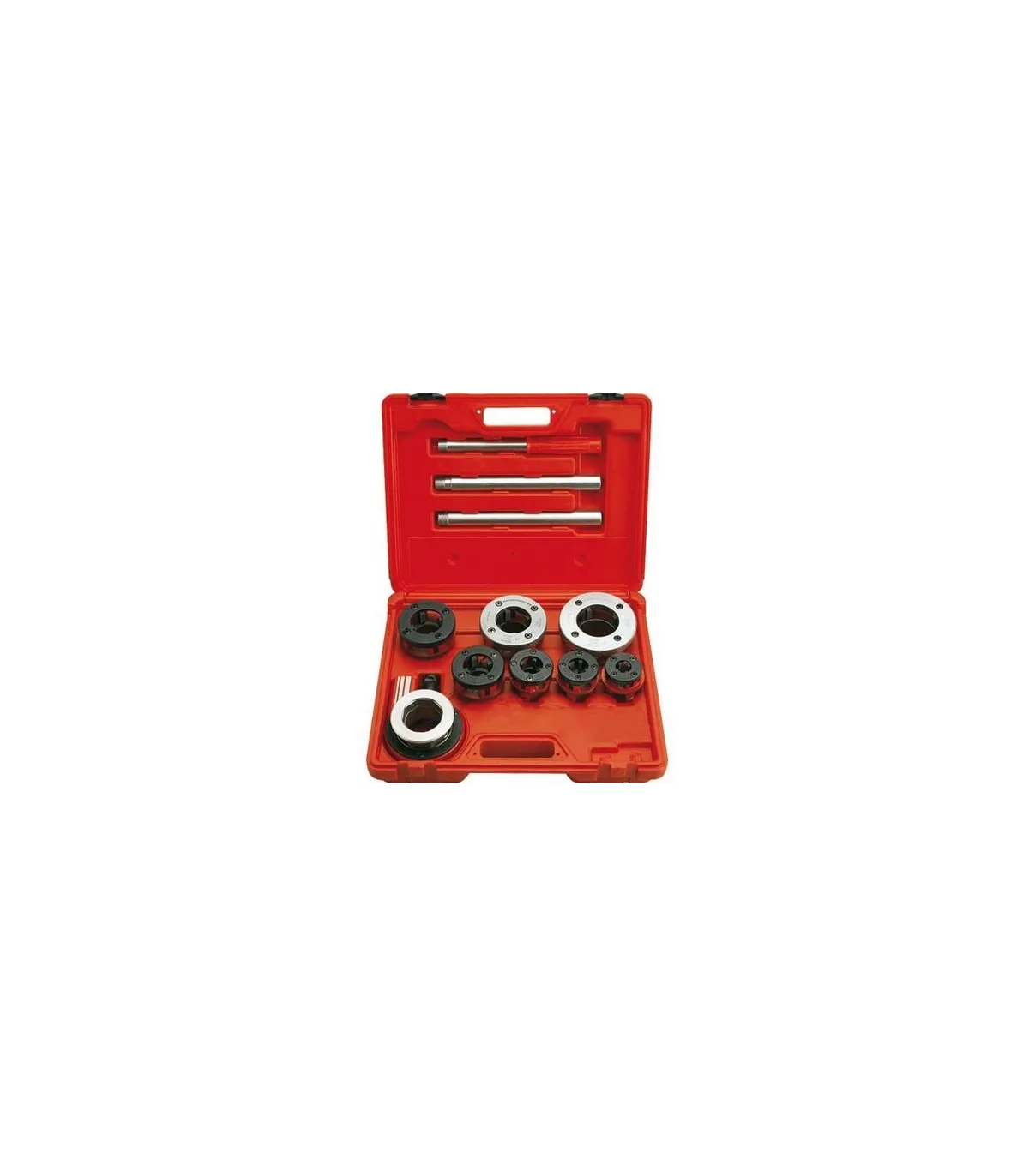 Set de cabezas de terraja BSPT (Ø 1/2" - 2") para realizar roscas precisas y seguras.