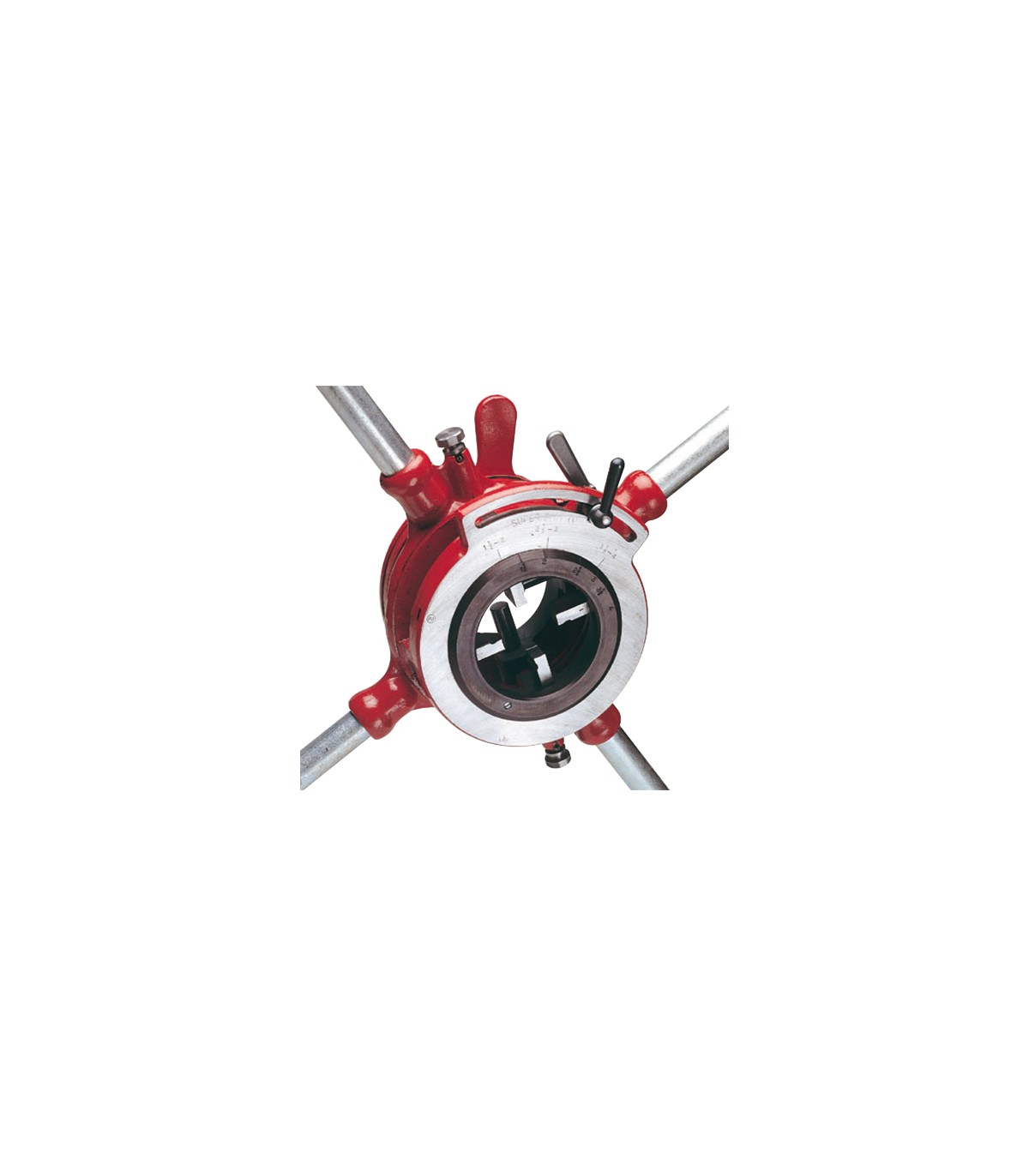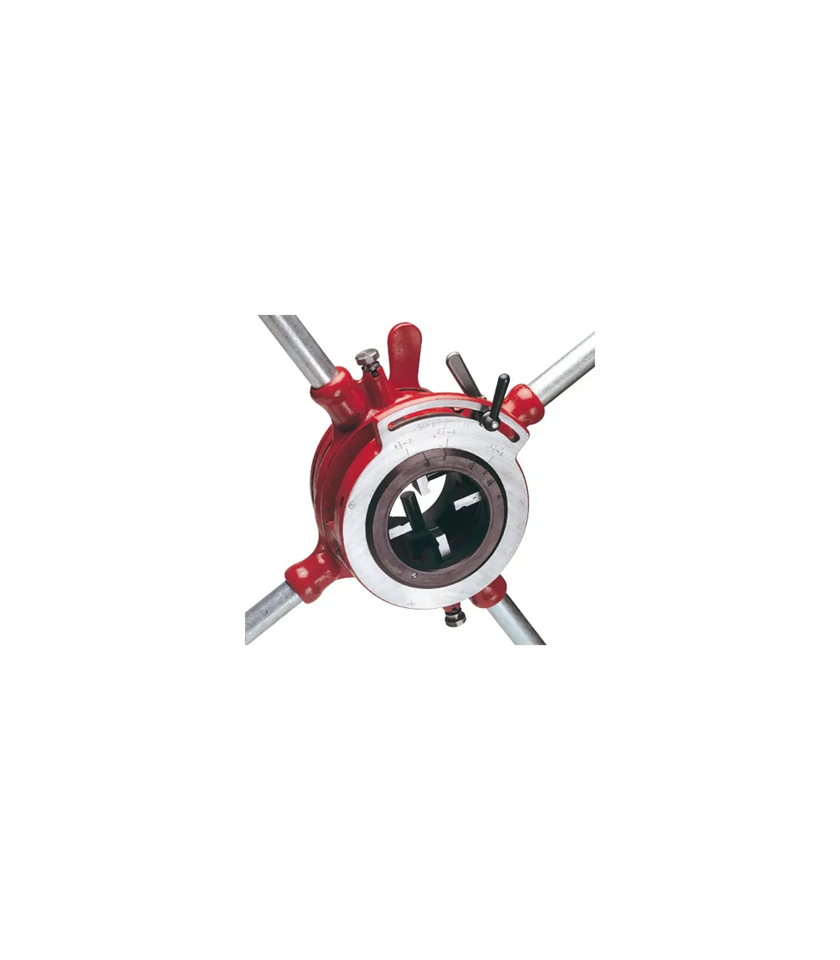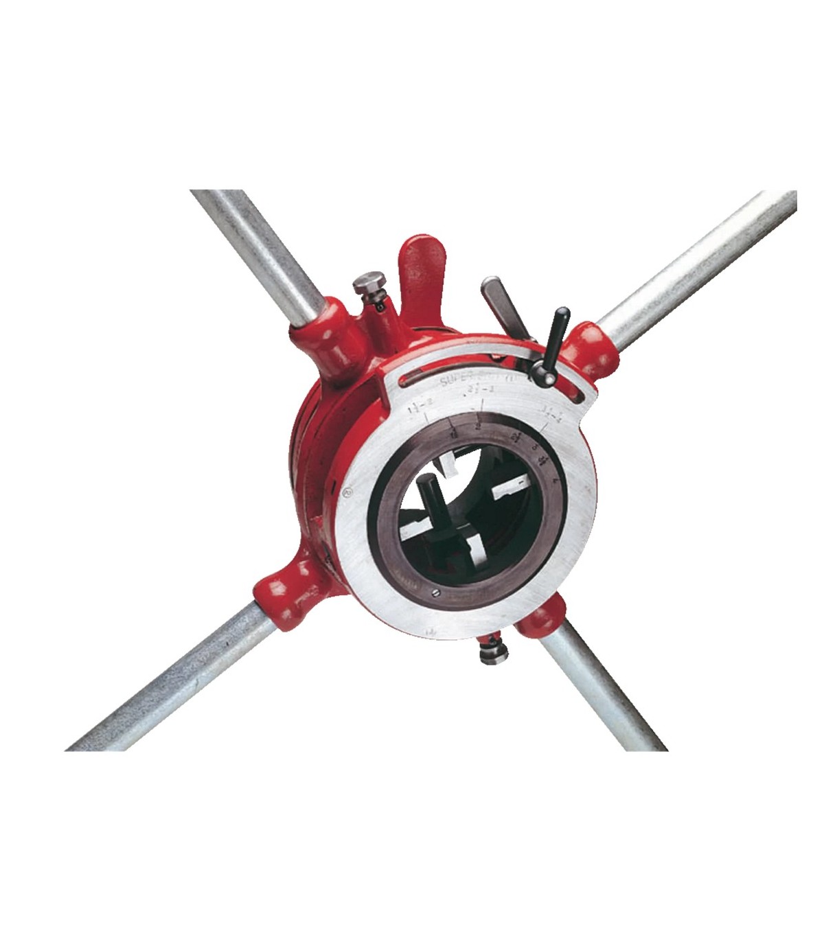 Cabeza de terrajas ajustable BSPT (Ø 1.1/2" - 3") con sistema de carraca con fácil centrado del tubo para garantizar roscas perfectas.