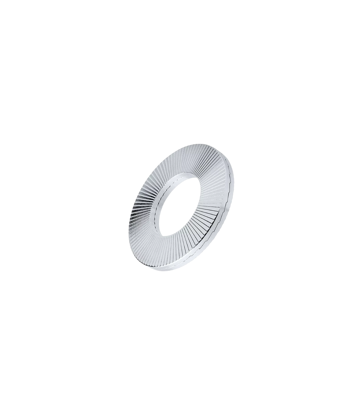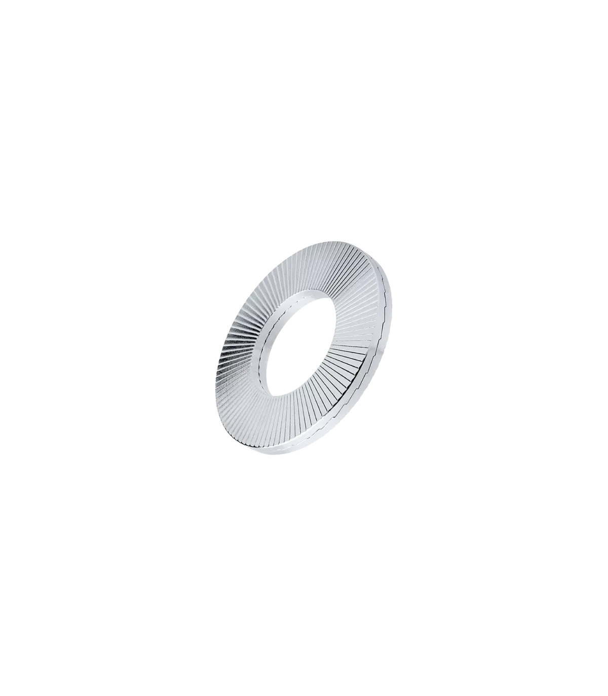 Este tipo de arandela ofrece la máxima seguridad con vibraciones y cargas dinámicas extremas. Cuando la unión atornillada se aprieta, los nervios radiales exteriores de las arandelas se fijan sobre las superficies de contacto. En caso de carga dinámica del sistema de seguridad, solo podrá haber movimiento entre las cuñas interiores. Esto llevará al incremento de la fuerza de apriete.
