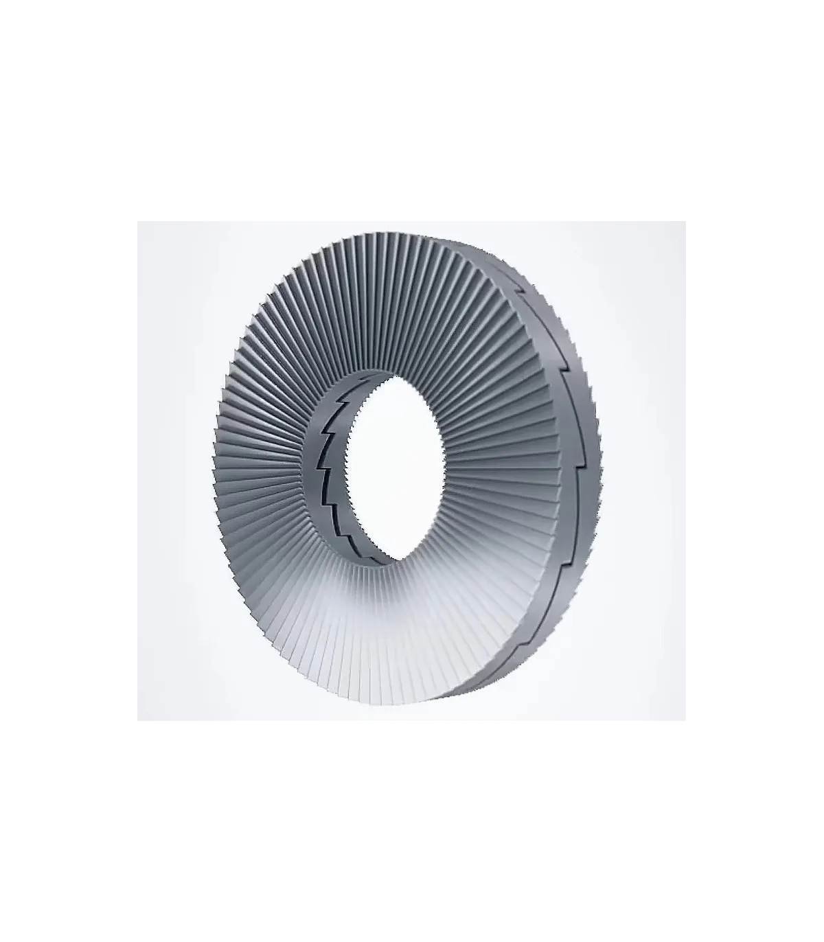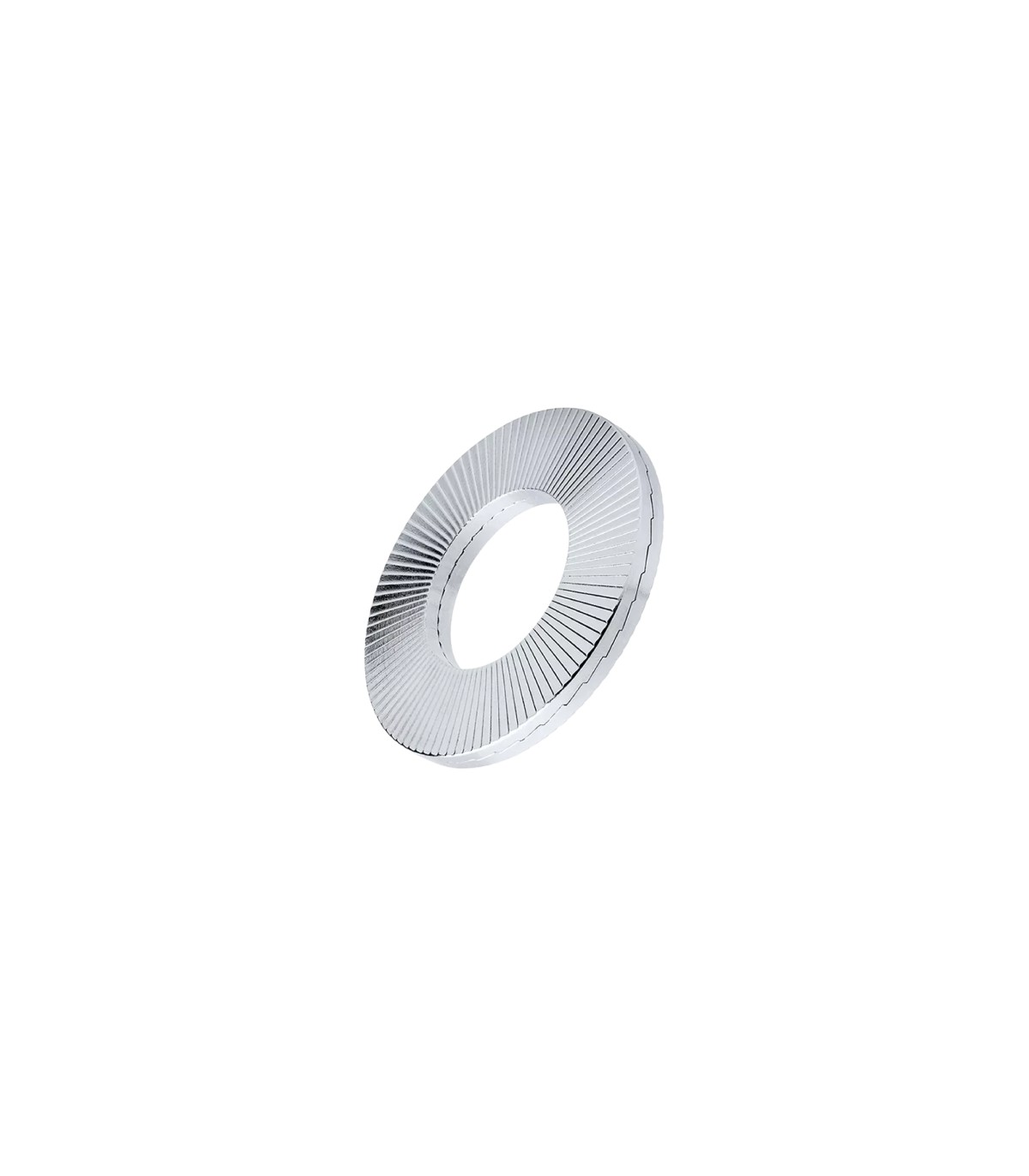 Este tipo de arandela ofrece la máxima seguridad con vibraciones y cargas dinámicas extremas. Cuando la unión atornillada se aprieta, los nervios radiales exteriores de las arandelas se fijan sobre las superficies de contacto. En caso de carga dinámica del sistema de seguridad, solo podrá haber movimiento entre las cuñas interiores. Esto llevará al incremento de la fuerza de apriete.