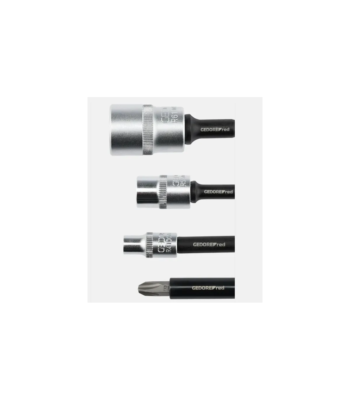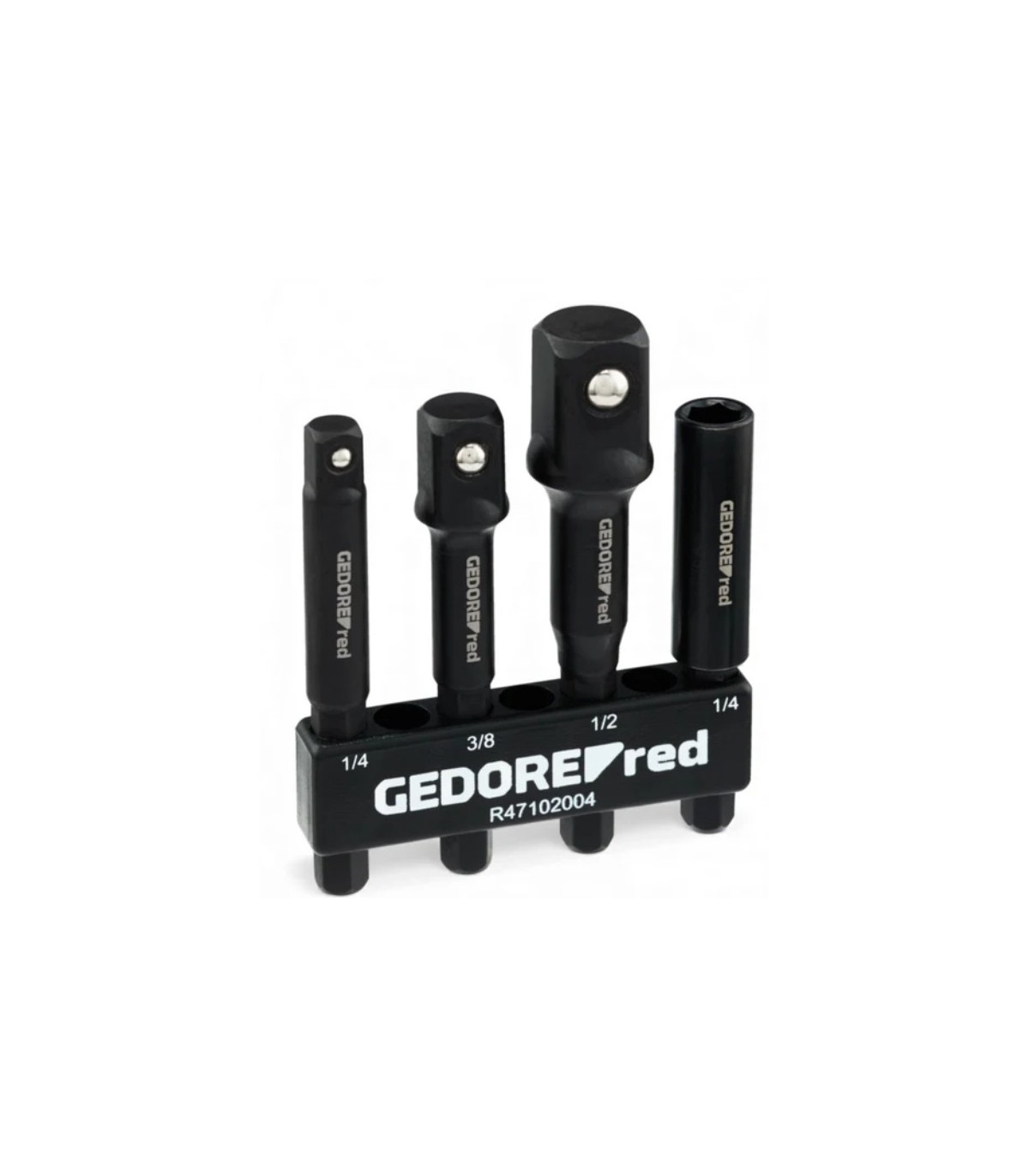 Este juego de adaptadores incluye piezas de 1/4", 3/8" y 1/2" junto con un portapuntas magnético de 1/4" que garantizan versatilidad en múltiples aplicaciones.