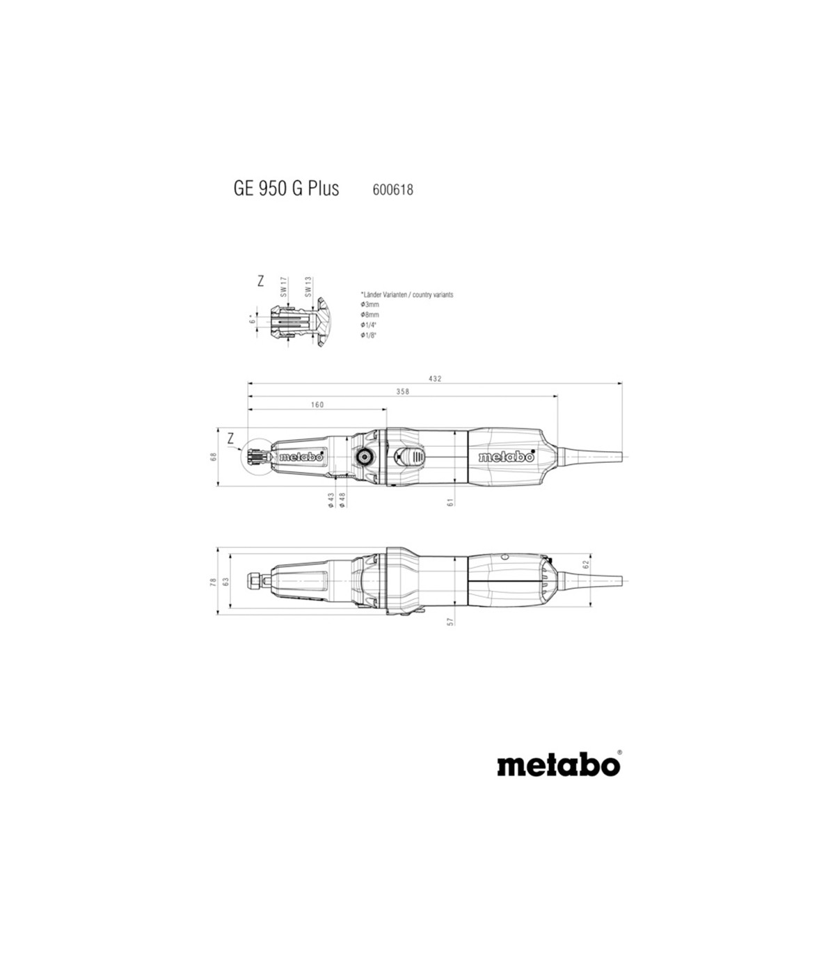 AMOLADORA RECTA LARGA METABO 950W 2500-8700rpm GE950GPLUS