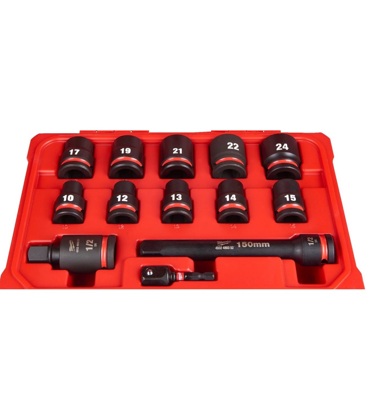 JUEGO 13 VASOS IMPACTO 1/2" MILWAKEE 10-24mm CORTOS